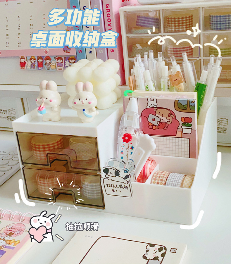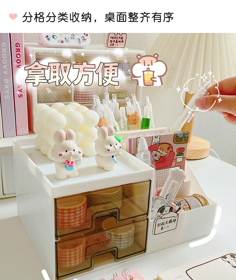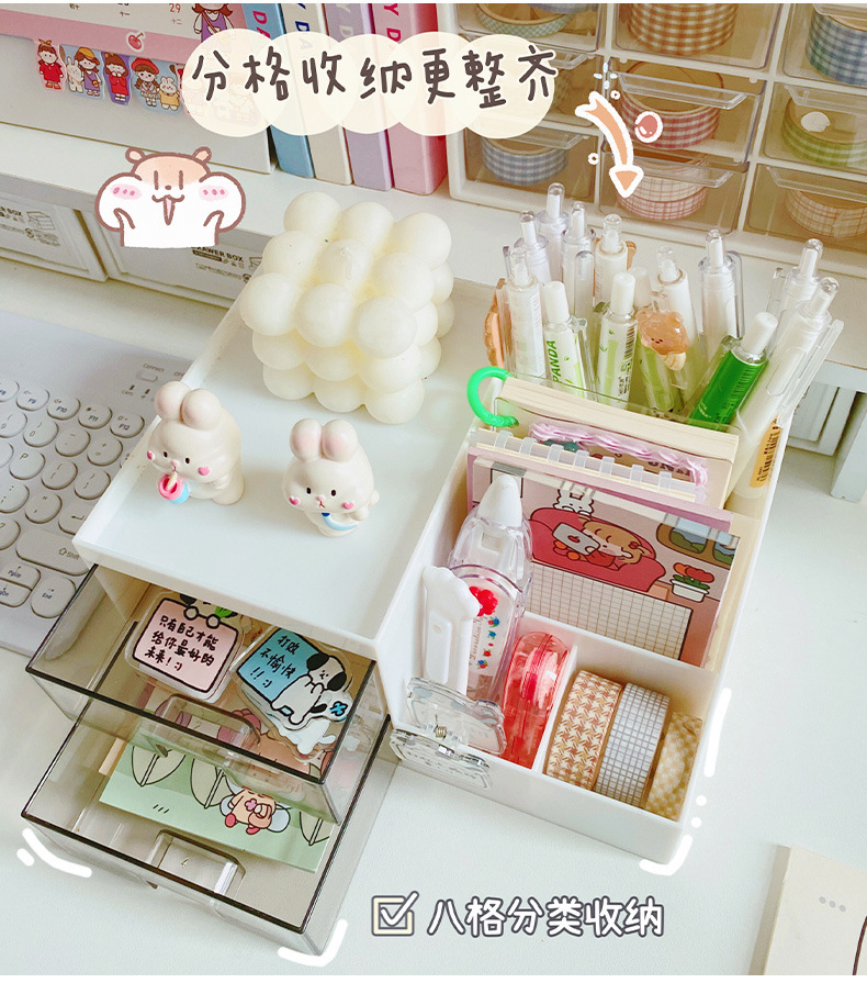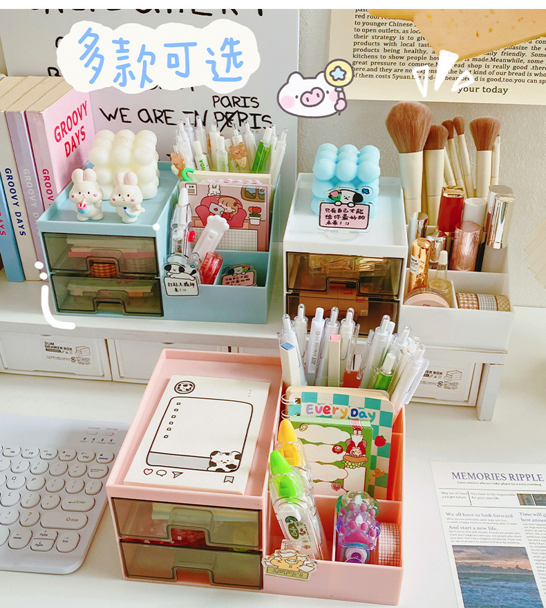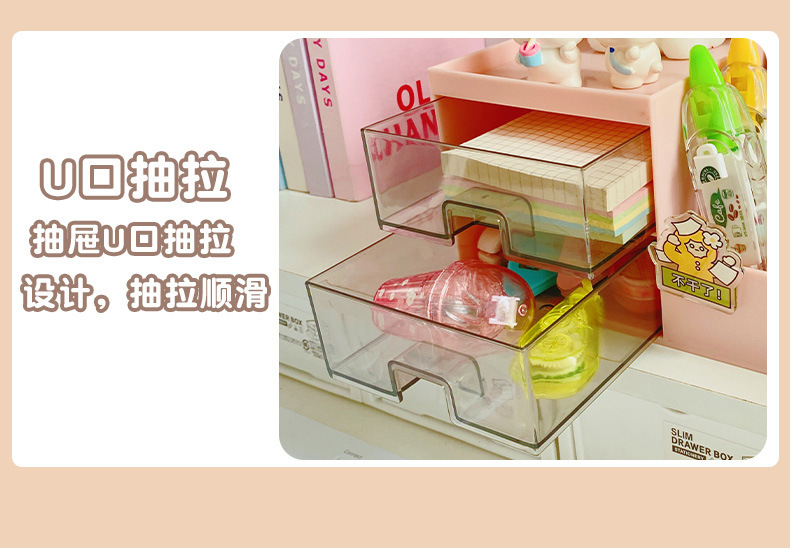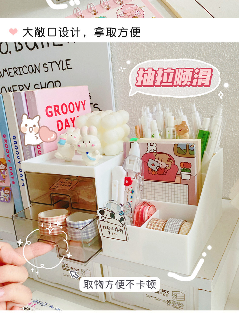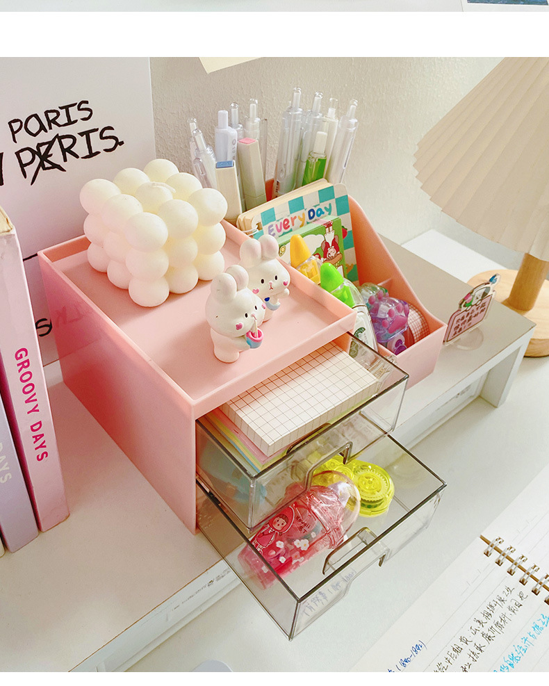 단색 투명한 데스크탑 저장 상자 서랍 유형 어린이 및 소녀 책상 학생 대용량 사무실 보관 랙스토어 가기