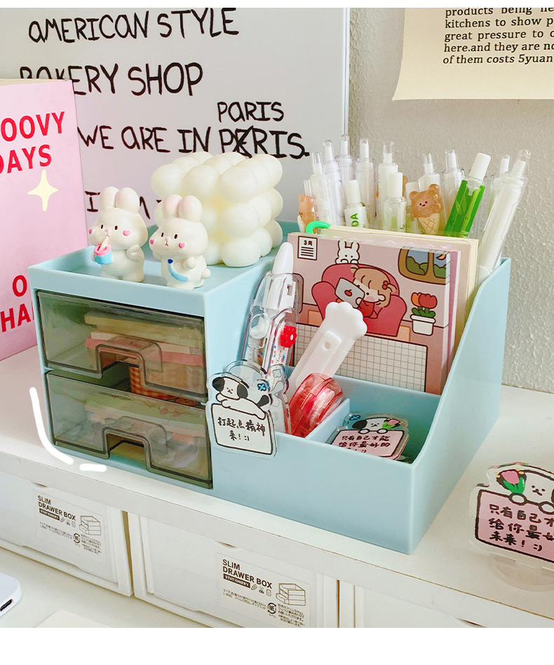 단색 투명한 데스크탑 저장 상자 서랍 유형 어린이 및 소녀 책상 학생 대용량 사무실 보관 랙