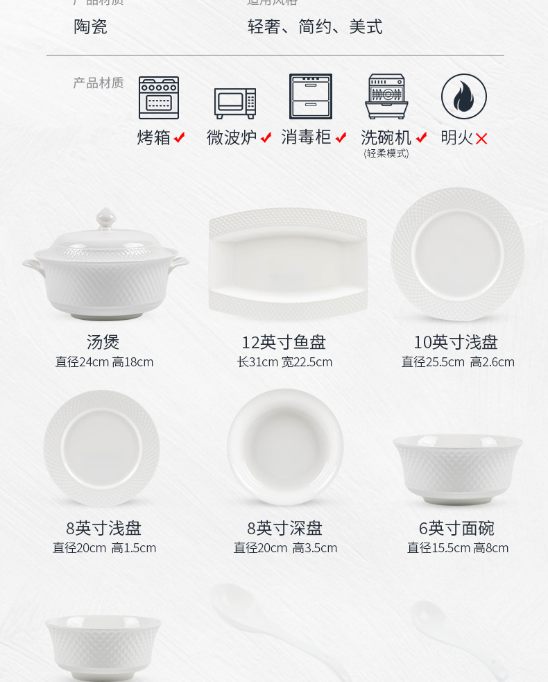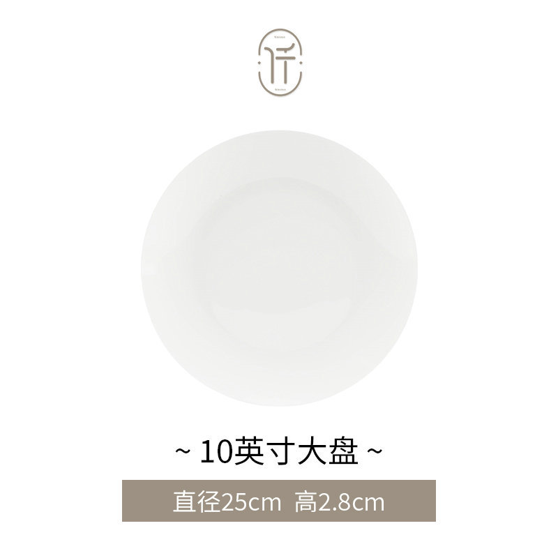 세라믹 플랫 플레이트 얕은 플레이트 호텔 상업 웨스턴 스테이크 플레이트 순수 화이트 라운드 식기 대형 플레이트 세라믹 플레이트스토어 가기