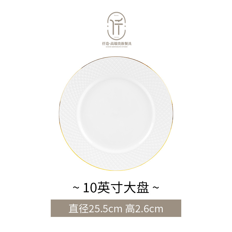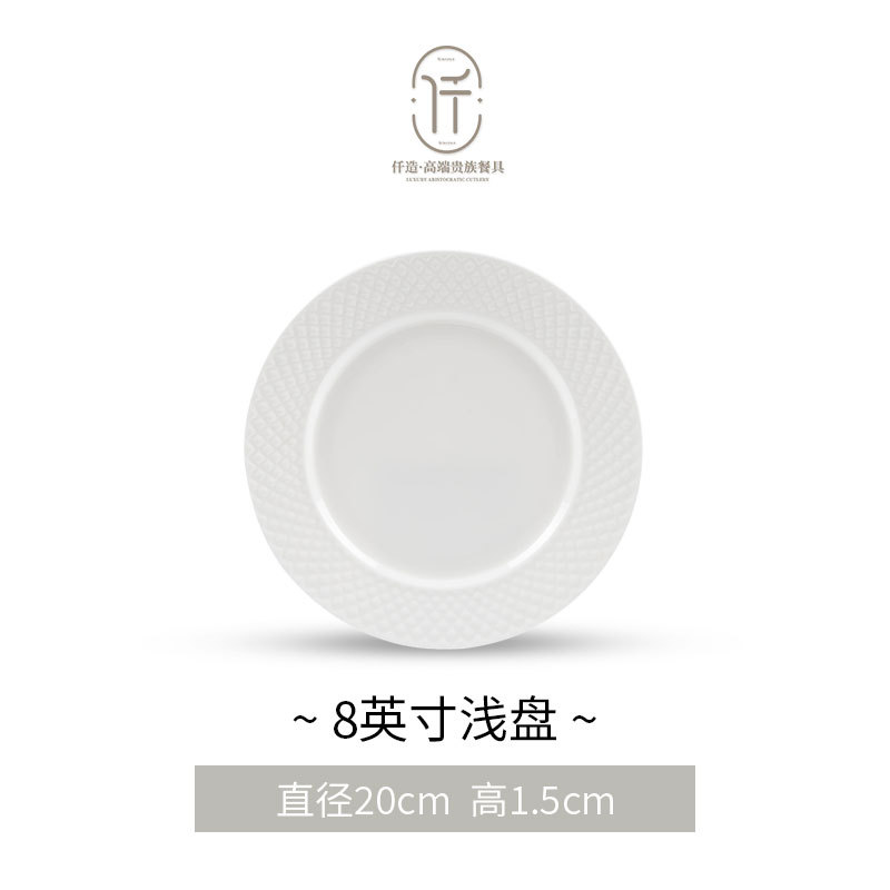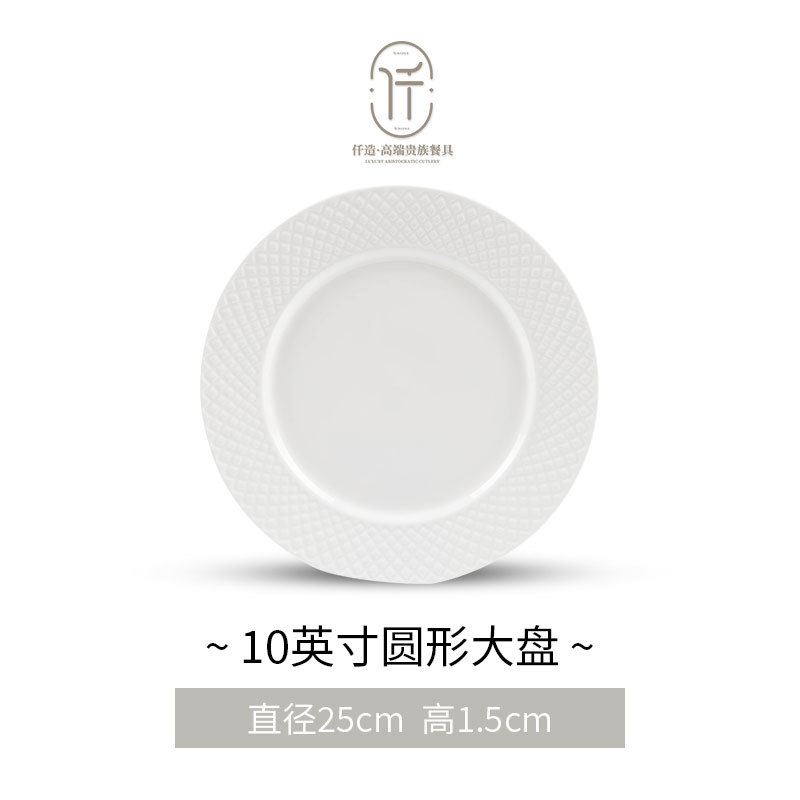 세라믹 플랫 플레이트 얕은 플레이트 호텔 상업 웨스턴 스테이크 플레이트 순수 화이트 라운드 식기 대형 플레이트 세라믹 플레이트