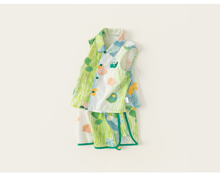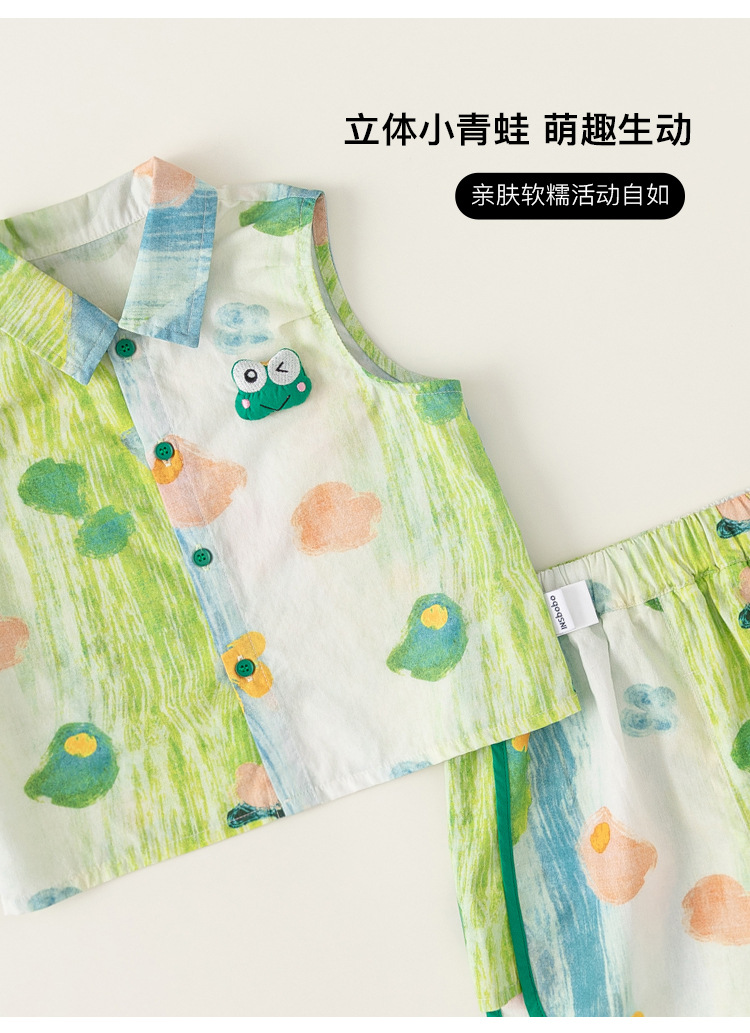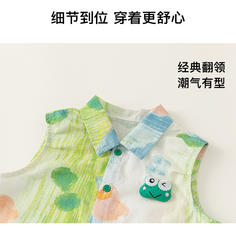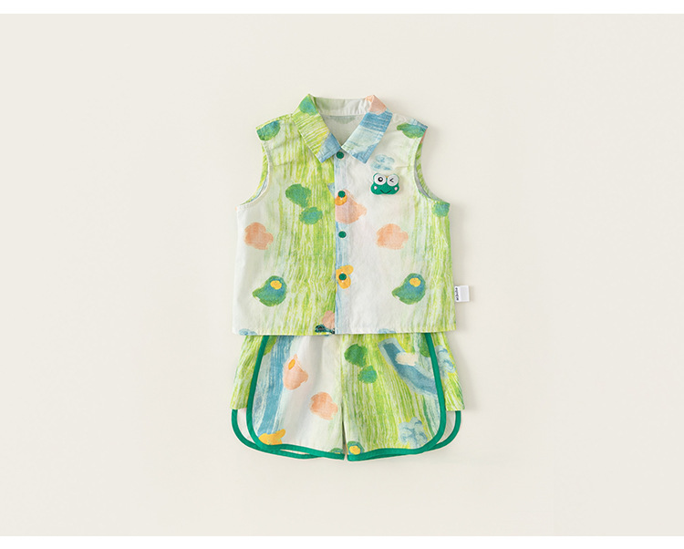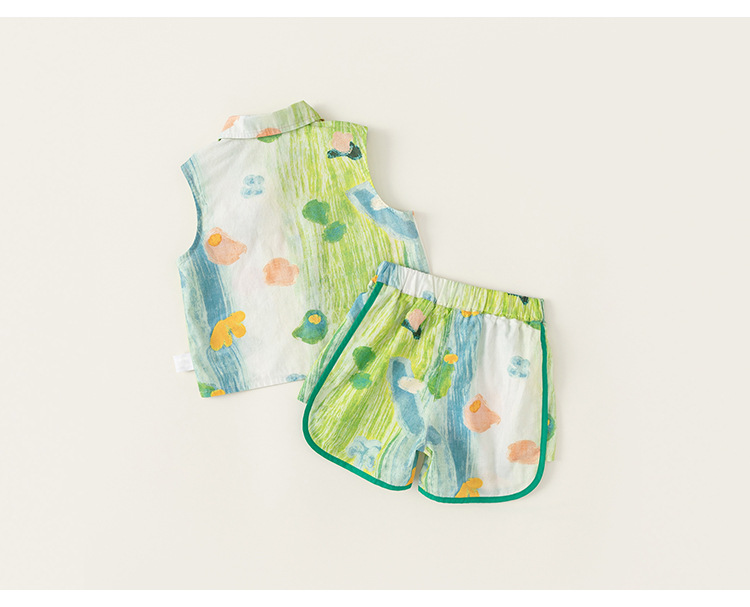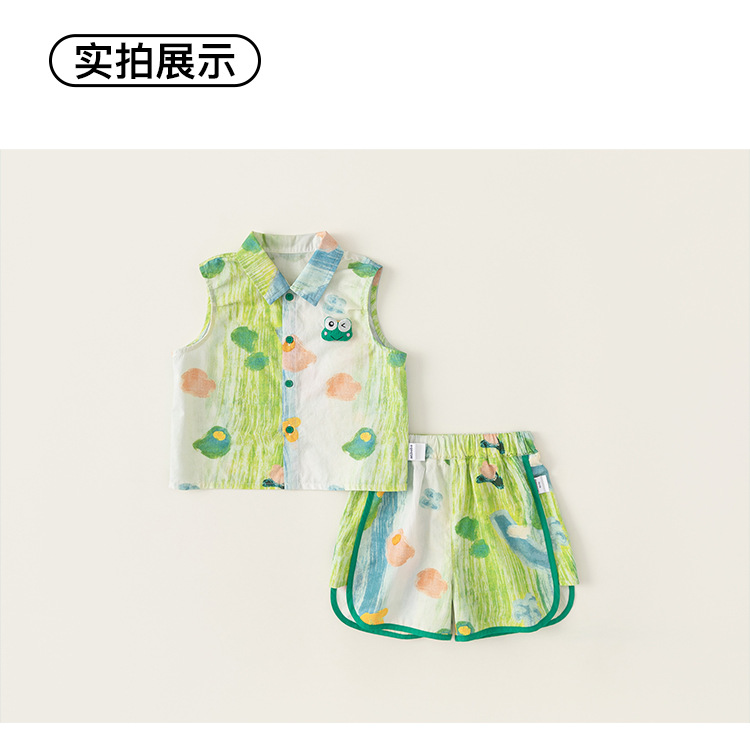유바오 아동복 아기 소년 여름 새 도착 세트 민소매 낙서 셔츠 반바지 2 피스 세트 어린이 세트 얇은스토어 가기