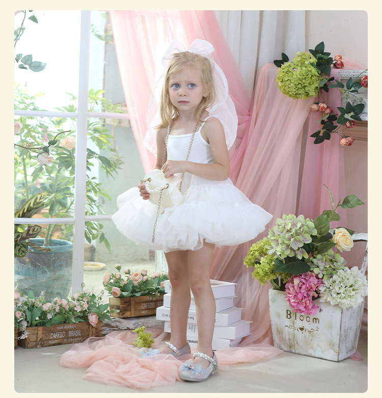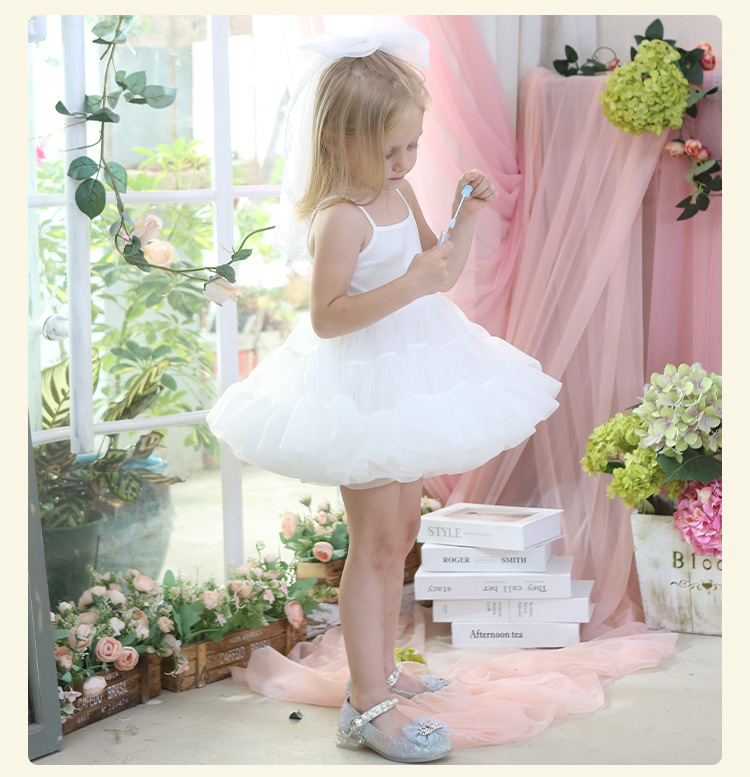 순수한 흰색 공주 치마 소녀 슬링 원피스 화이트 선박 스커트 꽃 소녀의 원피스 퍼프 스커트 케이크 스커트 부드러운 선박 통기성