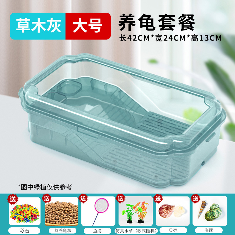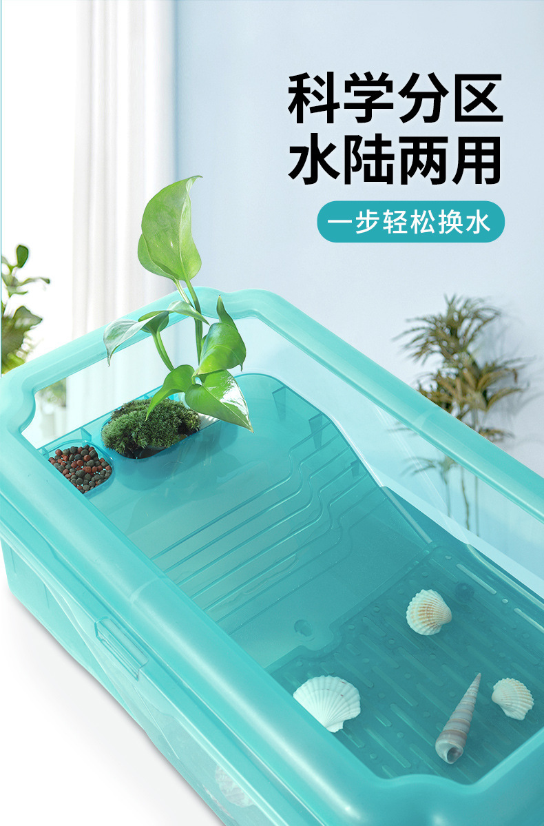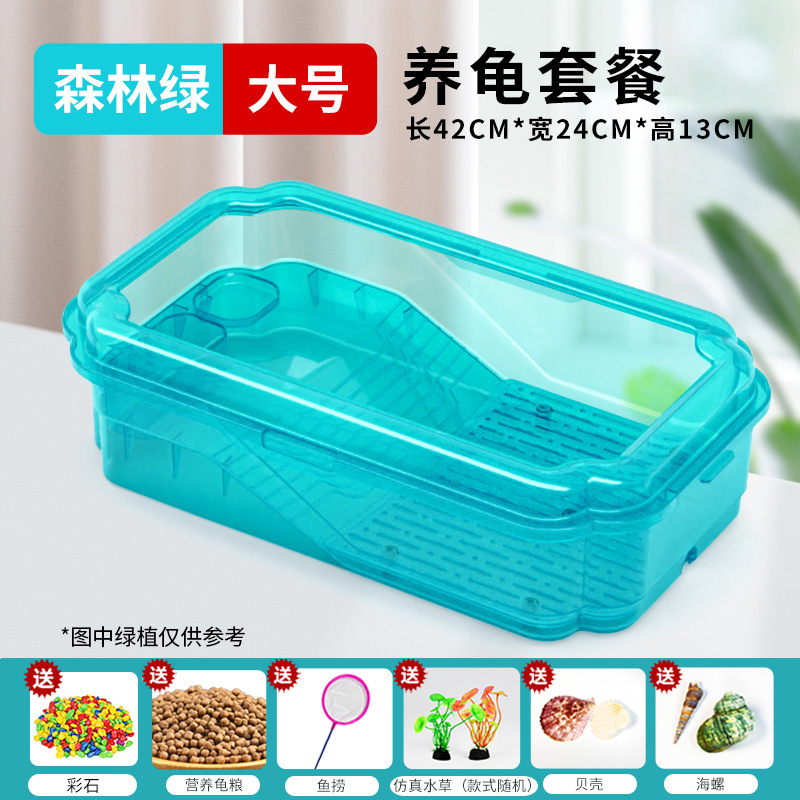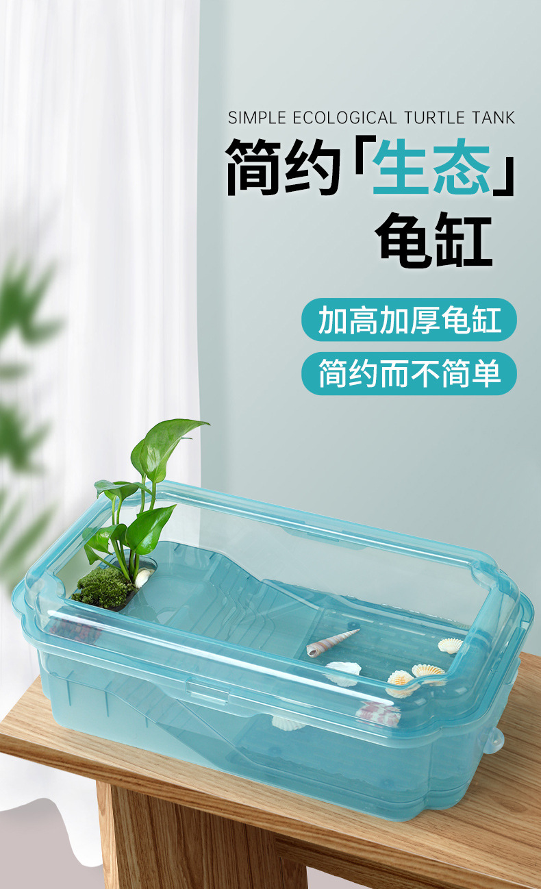 크리스탈 거북이 수조 조경 빌라 거북이 수조 브라질거북 잔디거북 거주지 탈출방지 녹색 식물 수조 수족관스토어 가기