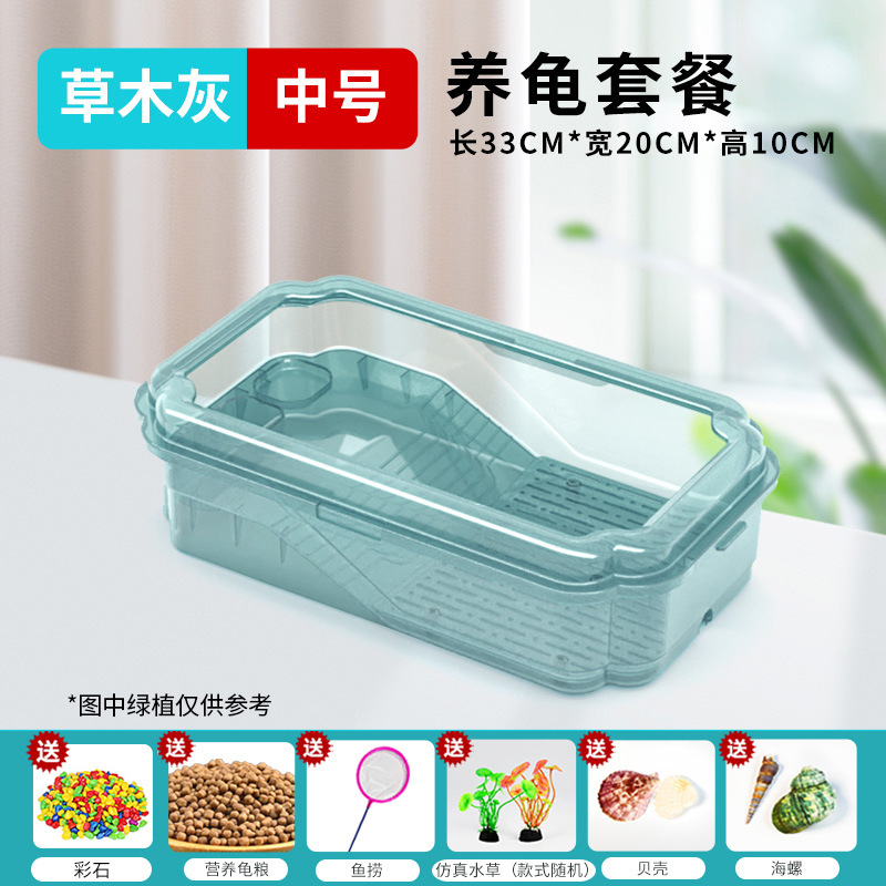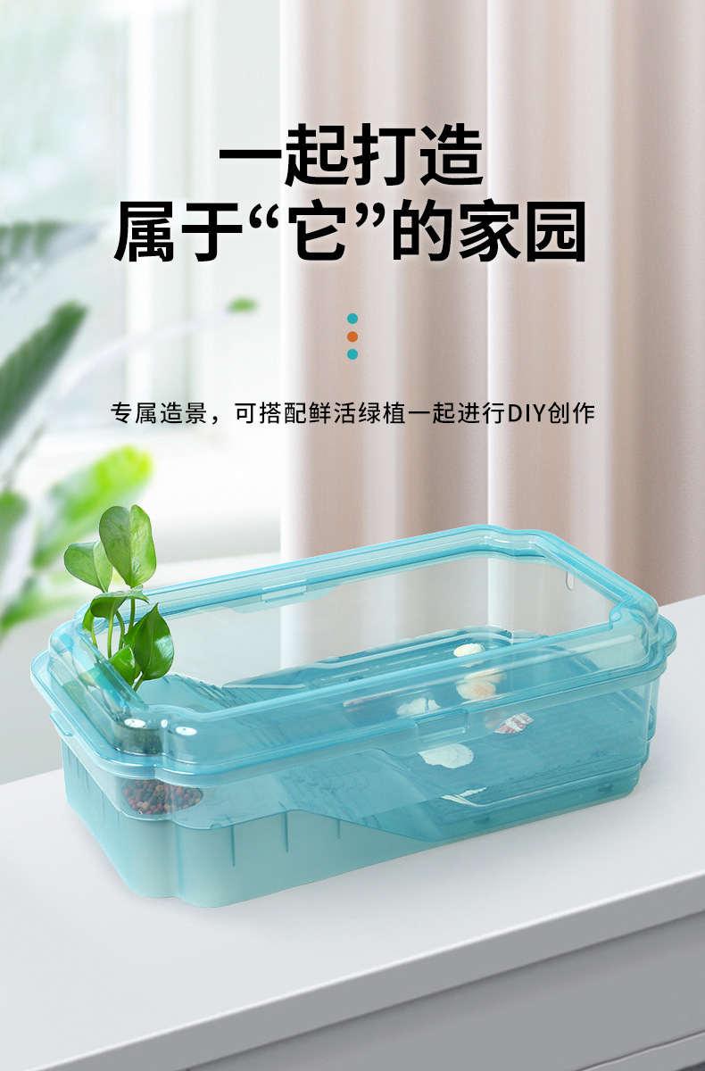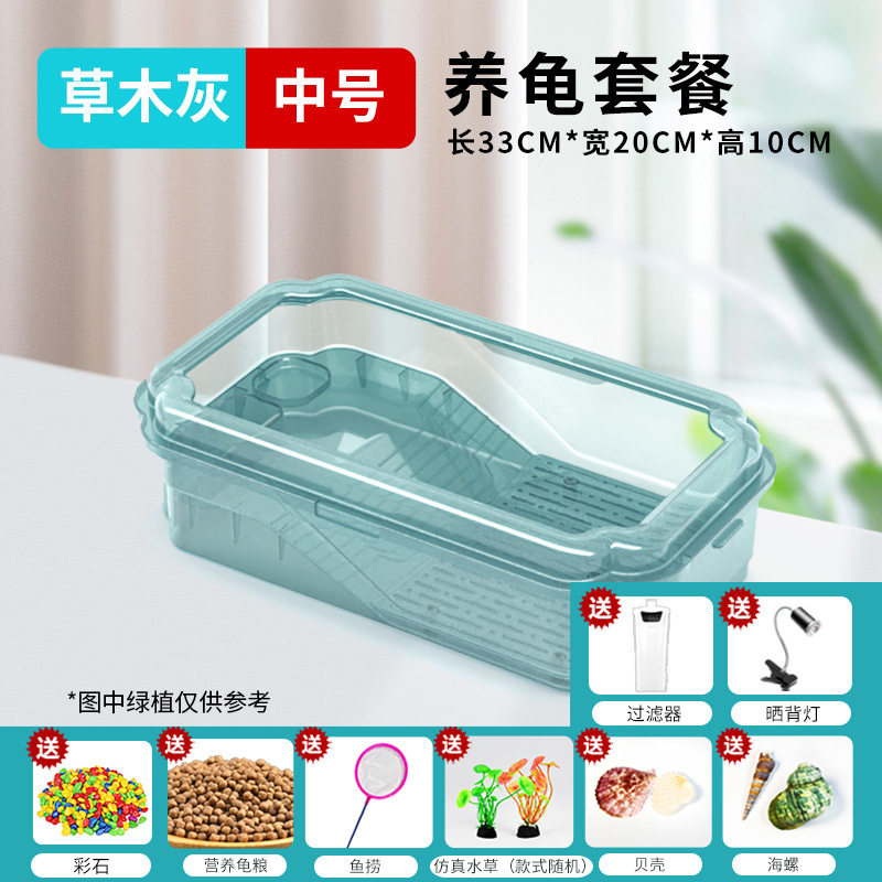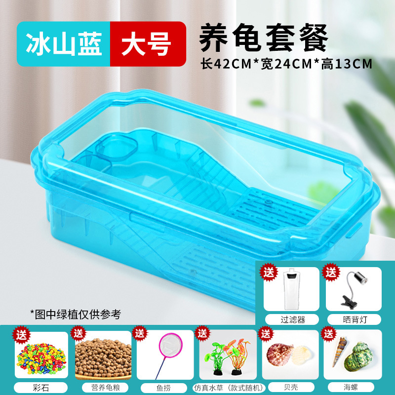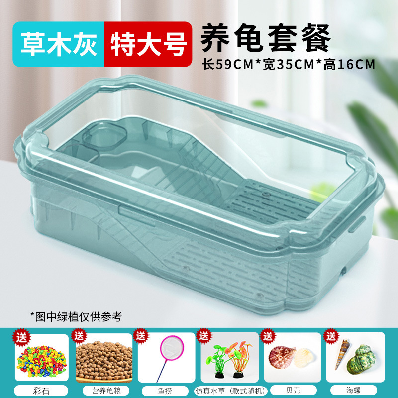 크리스탈 거북이 수조 조경 빌라 거북이 수조 브라질거북 잔디거북 거주지 탈출방지 녹색 식물 수조 수족관스토어 가기