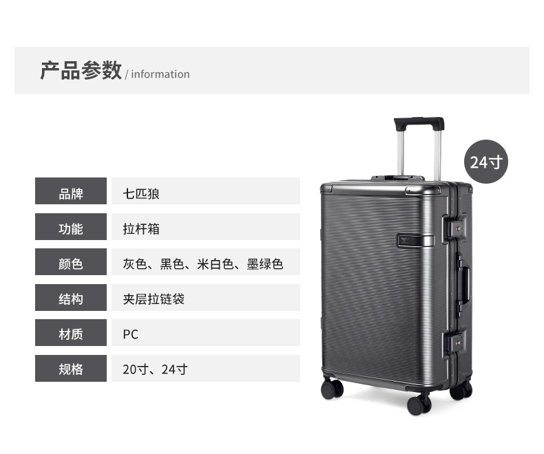 Septwolves 비즈니스 패션 대용량 여행 가방 범용 휠 탑승 비밀번호 잠금 장치 학생 여행 가방 도매 및 소매