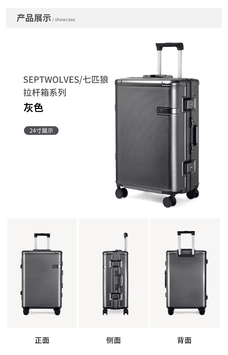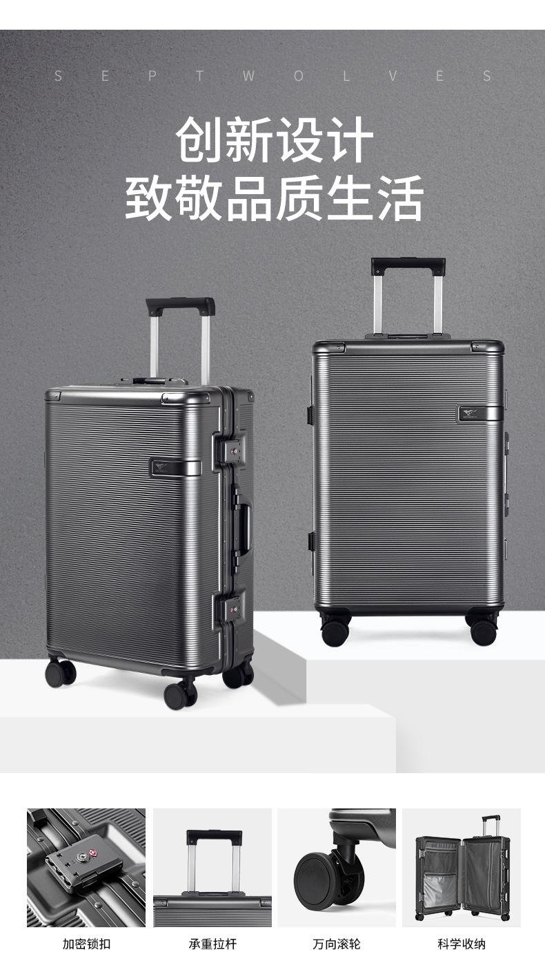 Septwolves 비즈니스 패션 대용량 여행 가방 범용 휠 탑승 비밀번호 잠금 장치 학생 여행 가방 도매 및 소매스토어 가기
