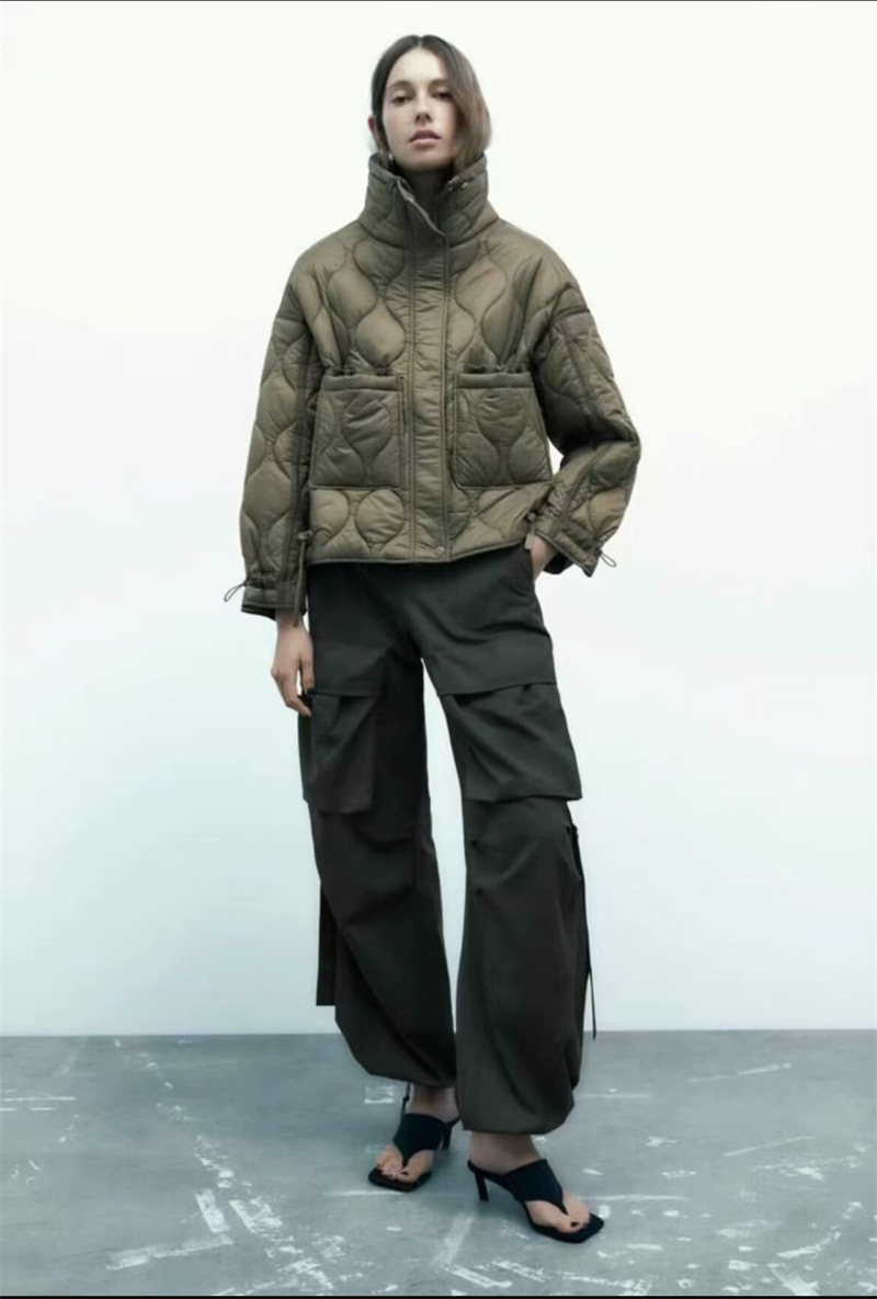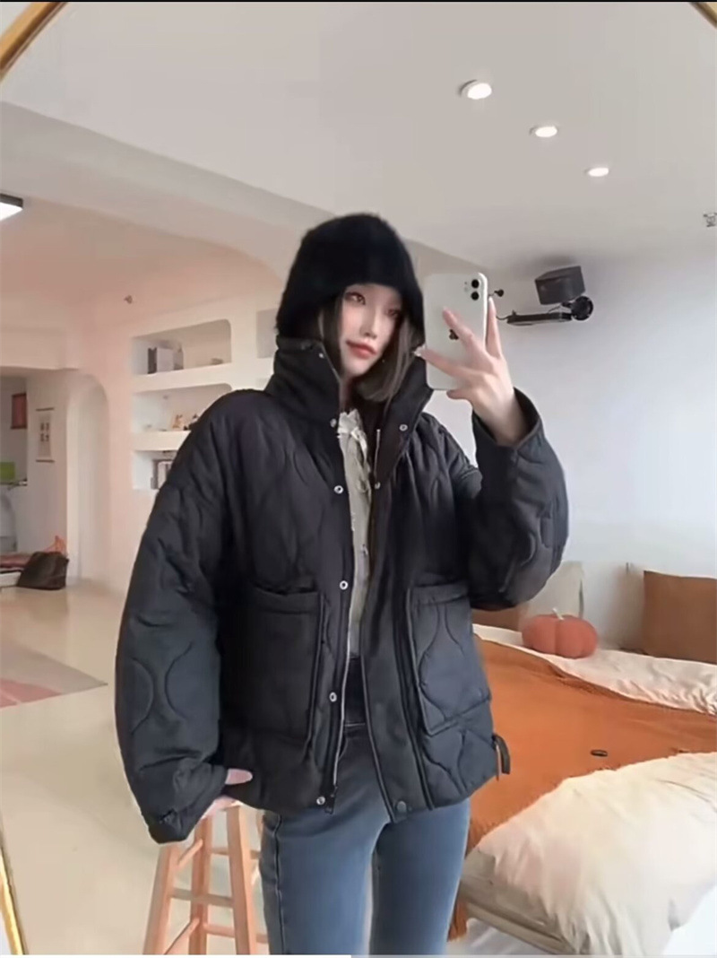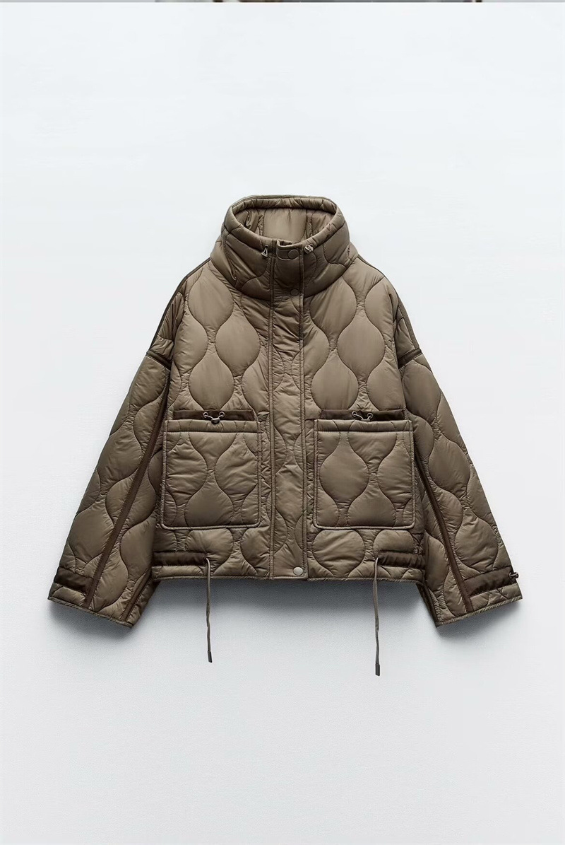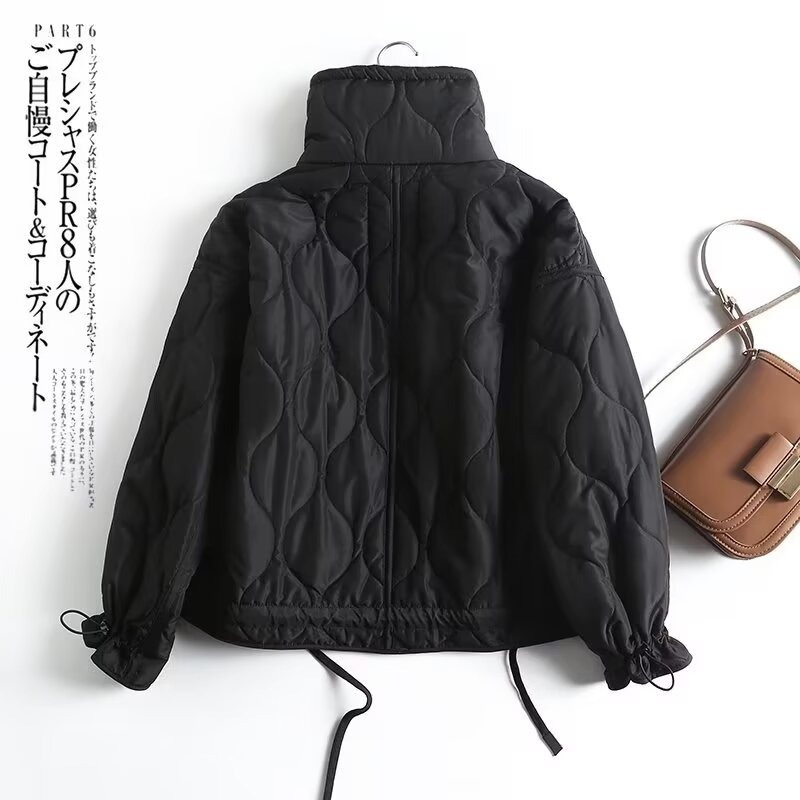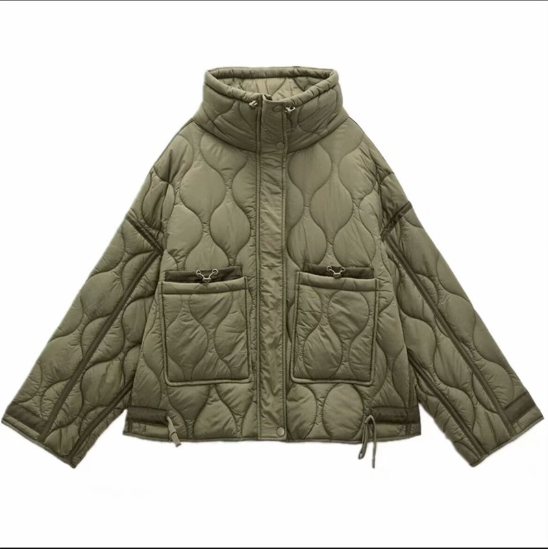 유럽과 미국 여성의 새로운 느슨한 높은 목 경량 퀼팅 코튼 패딩 재킷 코트 대조 컬러 캐주얼 올 매치 코튼 패딩 의류 가을과 겨울스토어 가기