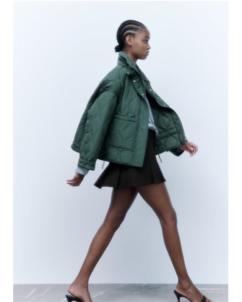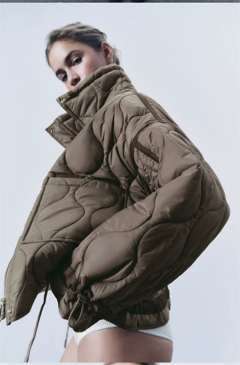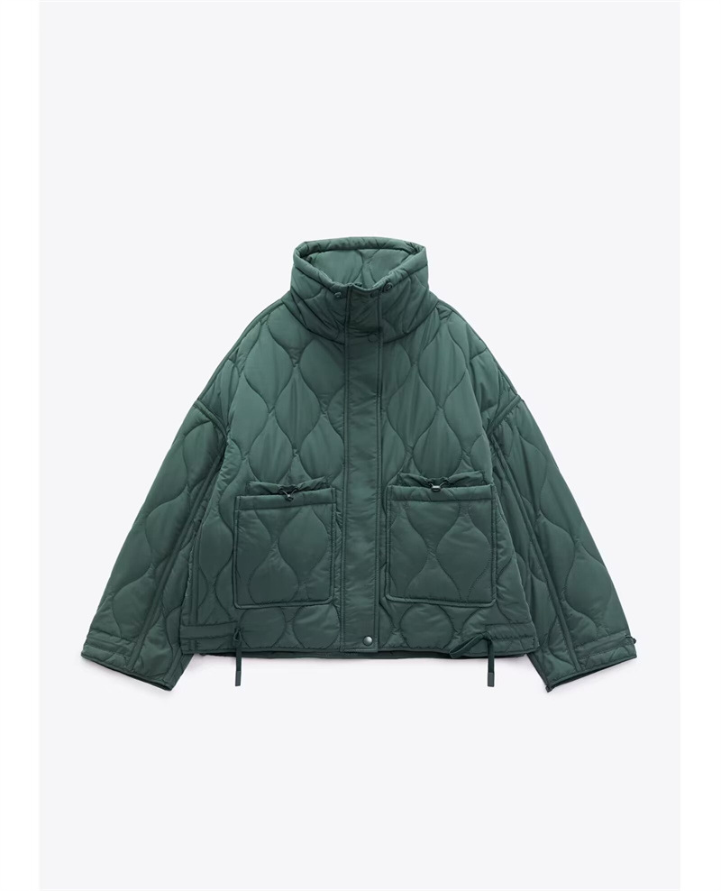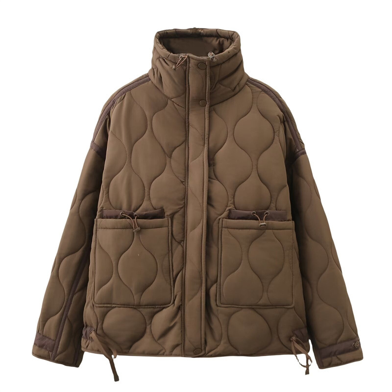 유럽과 미국 여성의 새로운 느슨한 높은 목 경량 퀼팅 코튼 패딩 재킷 코트 대조 컬러 캐주얼 올 매치 코튼 패딩 의류 가을과 겨울스토어 가기