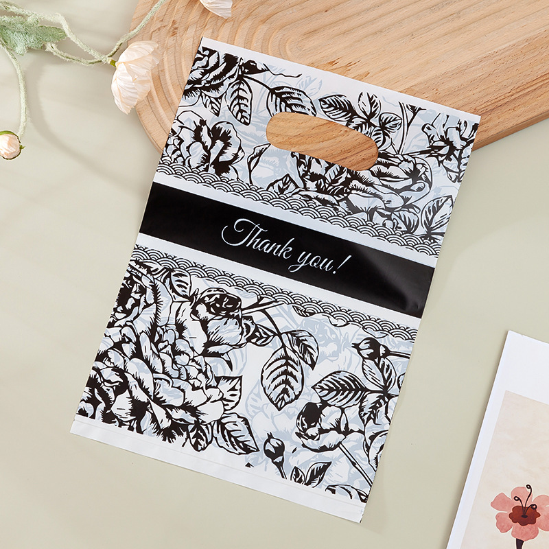 국경 감사 플라스틱 토트 가방 선물 선물 포장 가방 pe 쇼핑 가방 어린이 의류 가방 도매스토어 가기