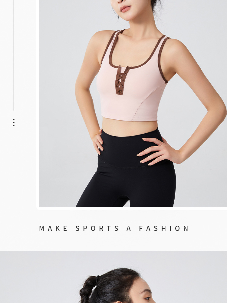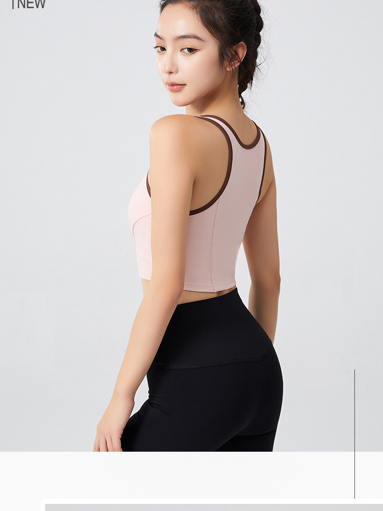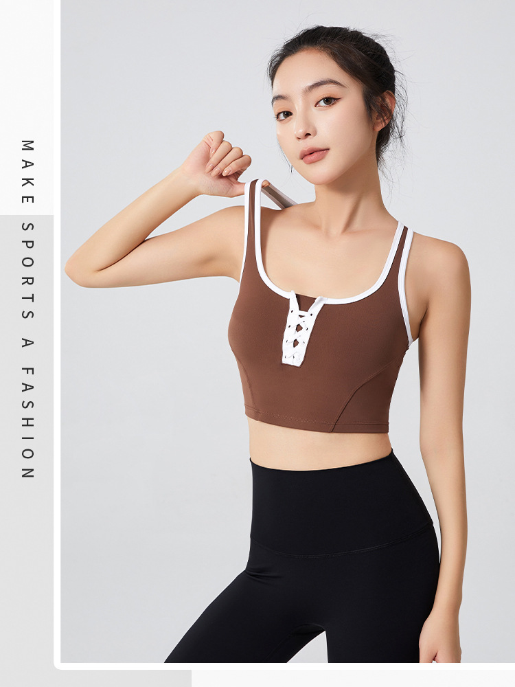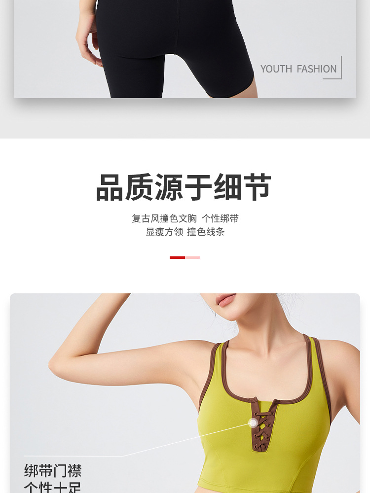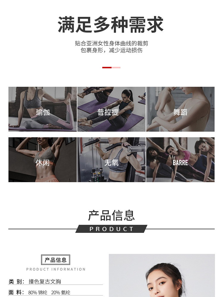 필라테스 요가 의류 최고 충격 방지 브래지어를 실행하는 가슴 패드 피트니스와 대조되는 컬러 복고풍 스타일 플러스 사이즈 스포츠 속옷스토어 가기