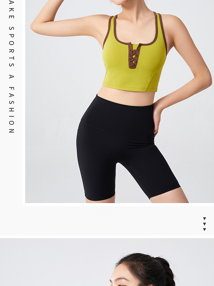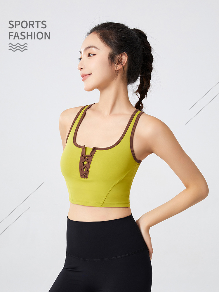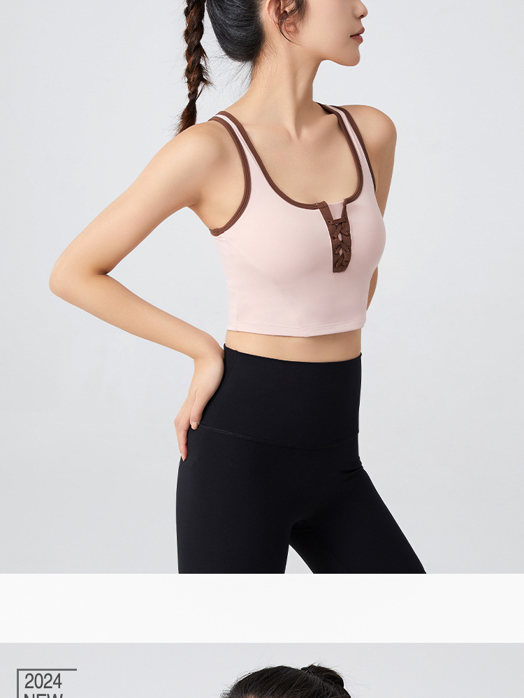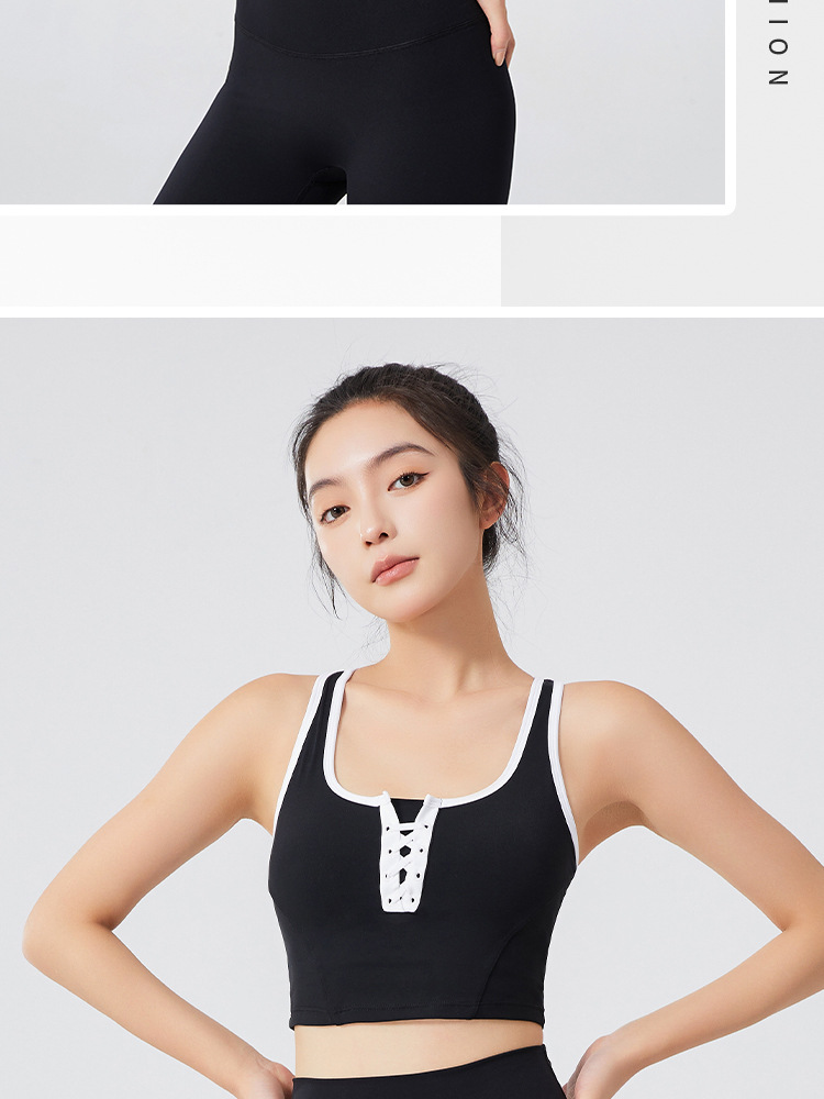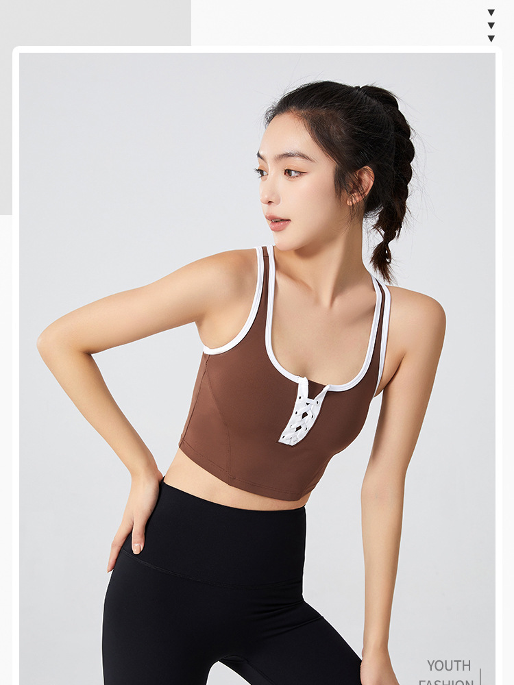 필라테스 요가 의류 최고 충격 방지 브래지어를 실행하는 가슴 패드 피트니스와 대조되는 컬러 복고풍 스타일 플러스 사이즈 스포츠 속옷스토어 가기