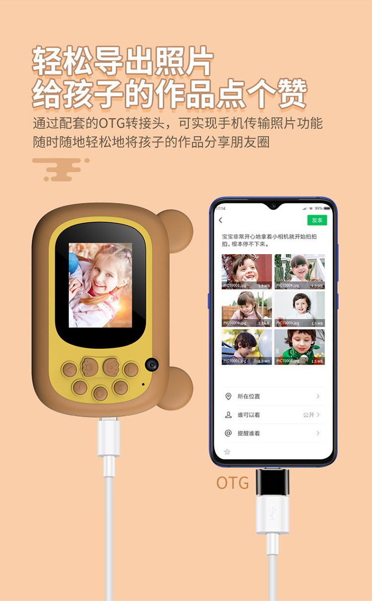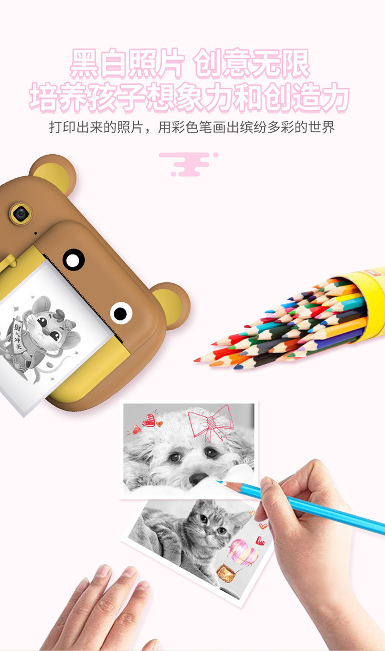 어린이 디지털 카메라 촬영 및 재생 디지털 사진 비디오 어린이 장난감을위한 국경 간 A7 열 인쇄