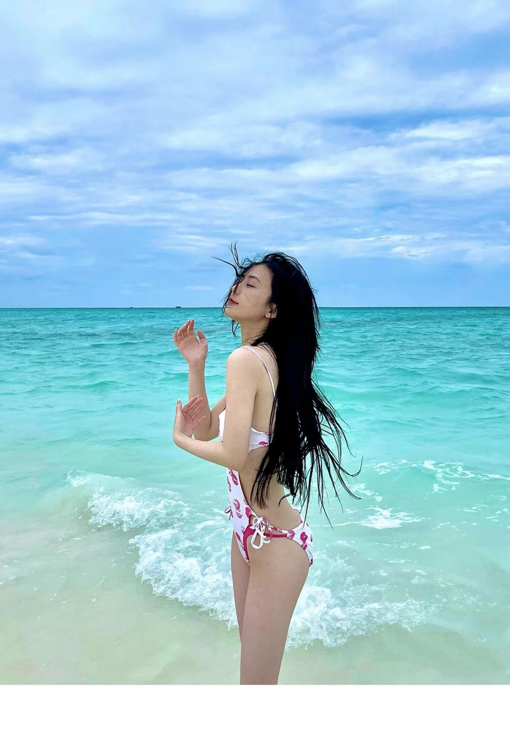 한국판 로맨틱 립 프린트 섹시 백리스 수영복 여성용 2026년 신상 인기 하이엔드 패션 비키니 휴가 수영복스토어 가기