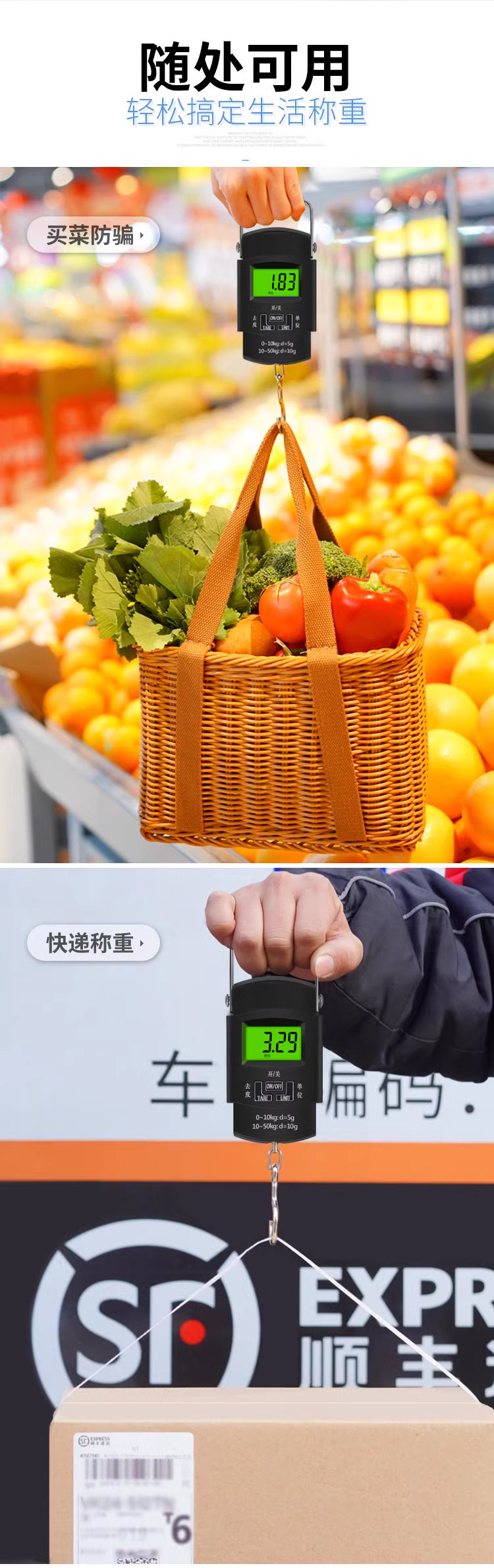 고정밀 휴대용 저울, 편리한 낚시 및 택배용 전자 저울, 정밀 채소 판매용 스프링 걸이형 저울, 휴대용스토어 가기