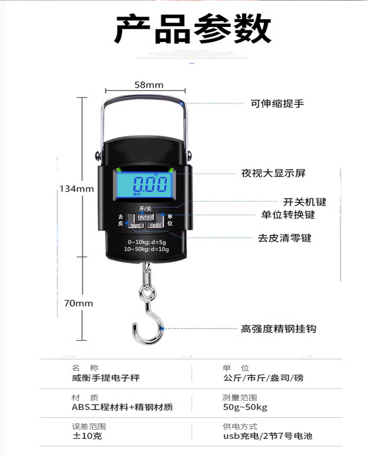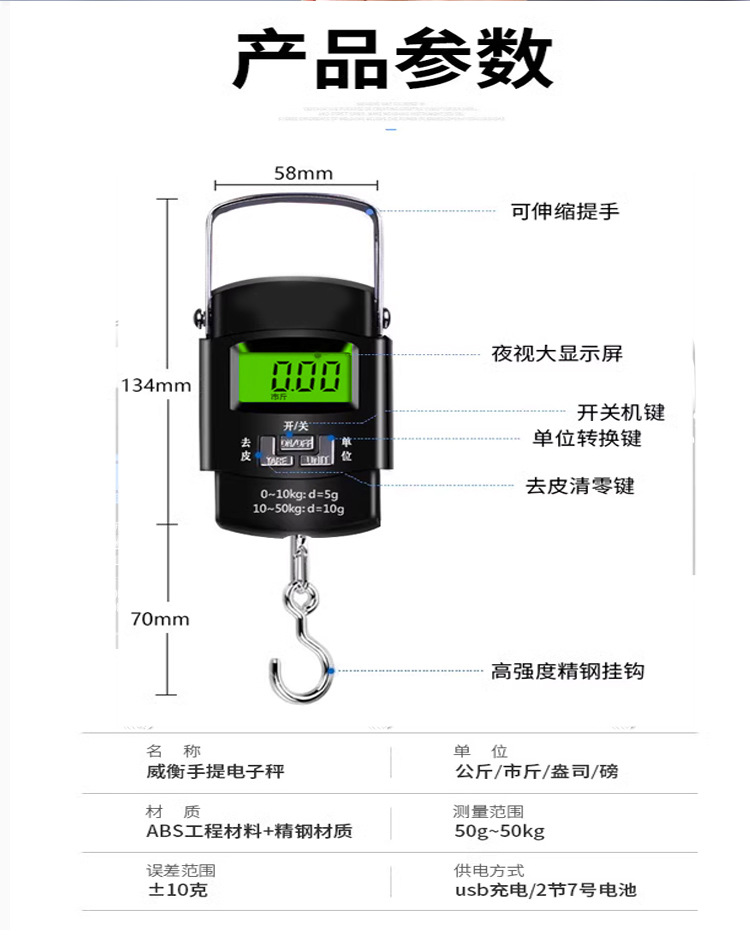 고정밀 휴대용 저울, 편리한 낚시 및 택배용 전자 저울, 정밀 채소 판매용 스프링 걸이형 저울, 휴대용