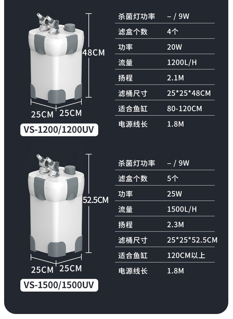 • [살균 램프 포함/100-120cm 어항에 적합] 1200L/H 조절 가능