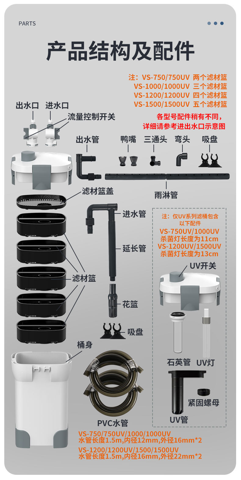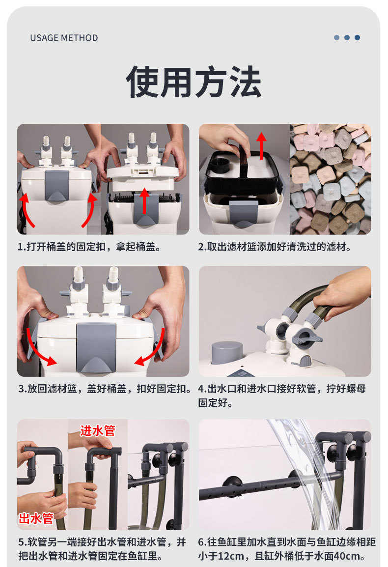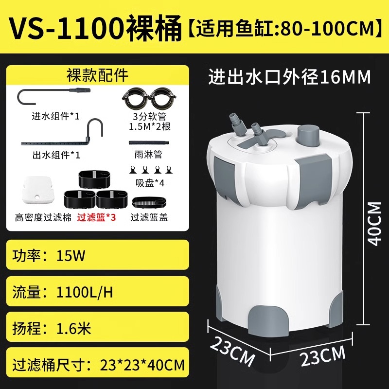 • [살균 램프 포함/60-80cm 어항에 적합] 1000L/H 조절 가능한 흐름