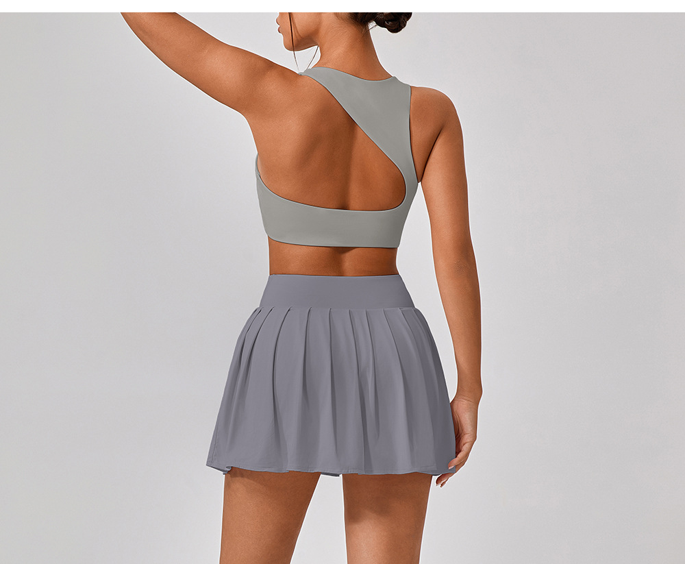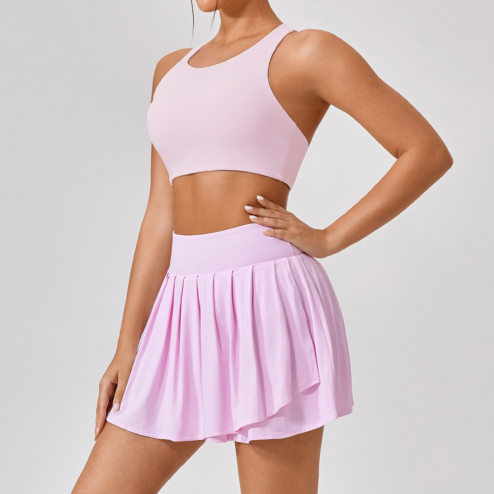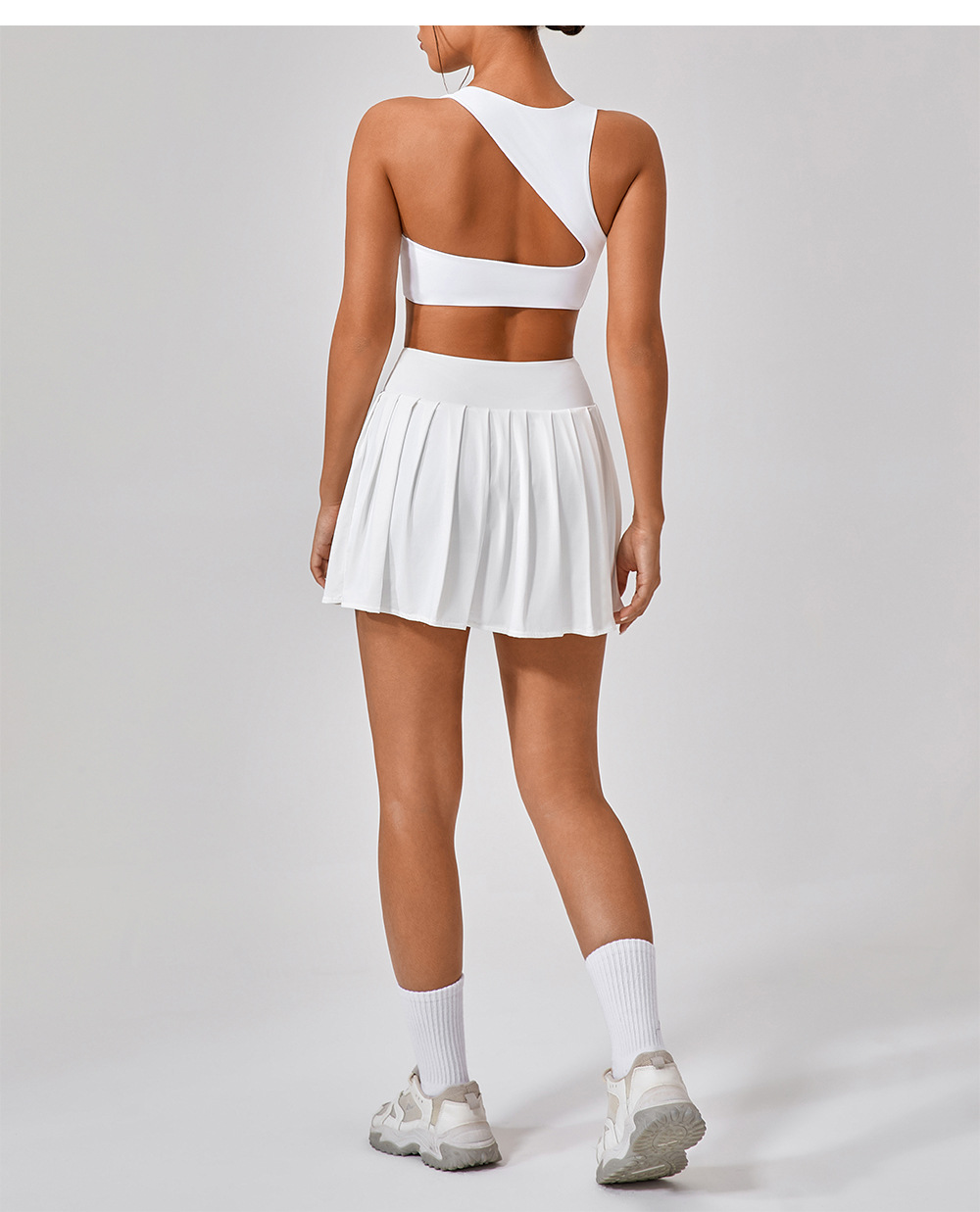 여름 새로운 요가 옷 세트 여성 야외 스포츠 달리기 세트 여성 슬림핏 탄성 요가 피트니스 주름 치마