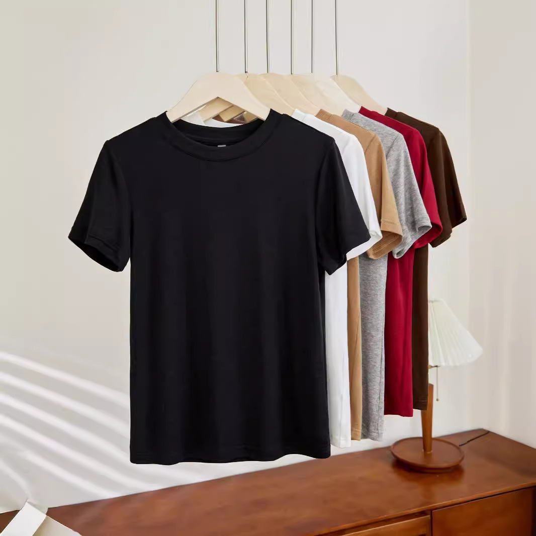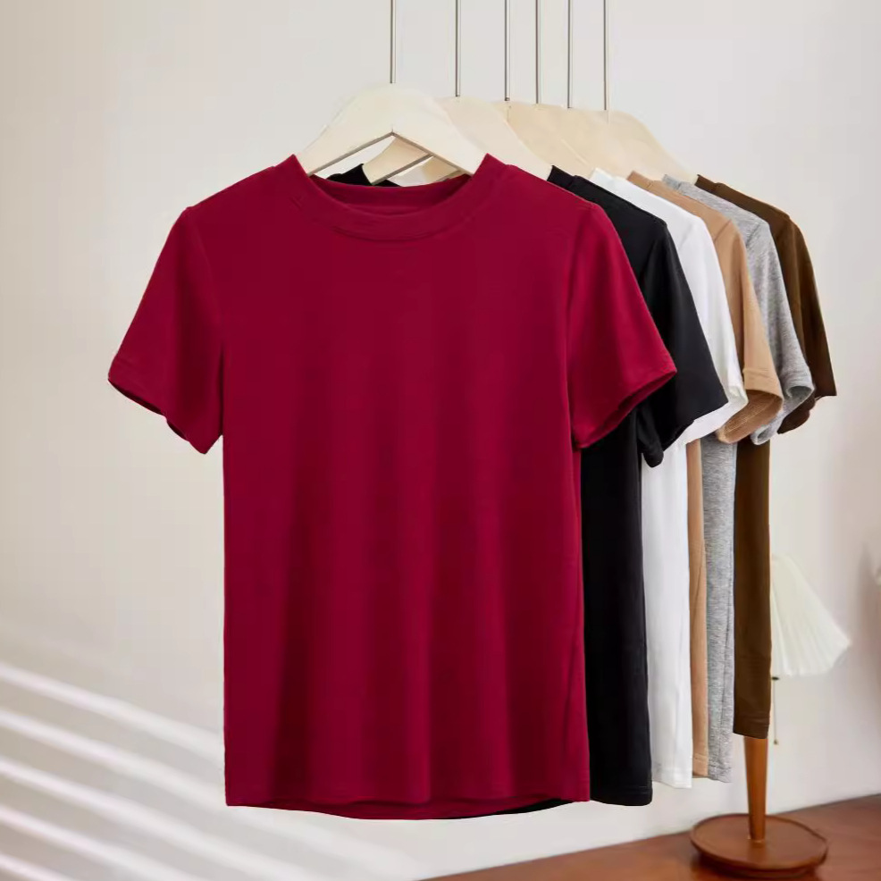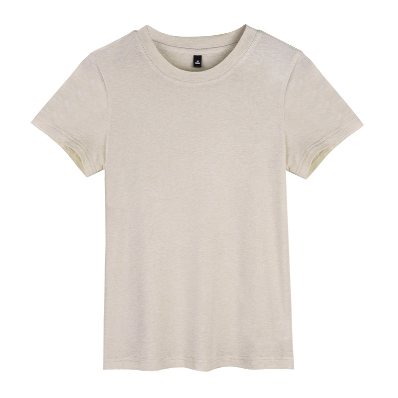 하이 퀄리티 텐셀 울 마스크 티셔츠 여성용 얇은 여름 새로운 Lyocell 라운드 넥 분위기 어깨 탑