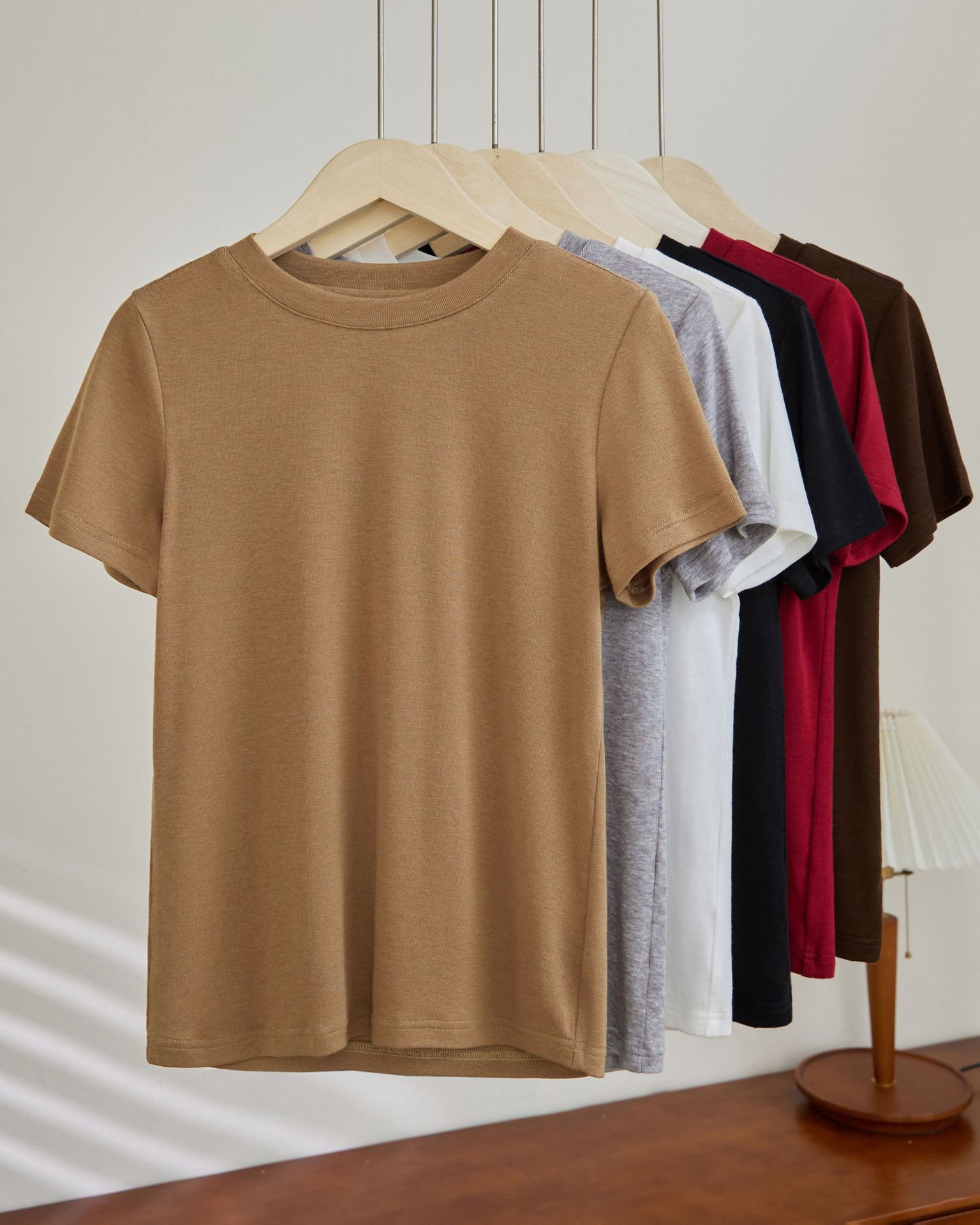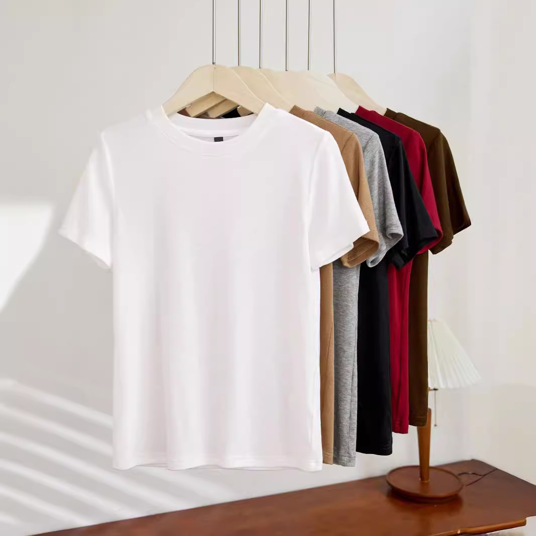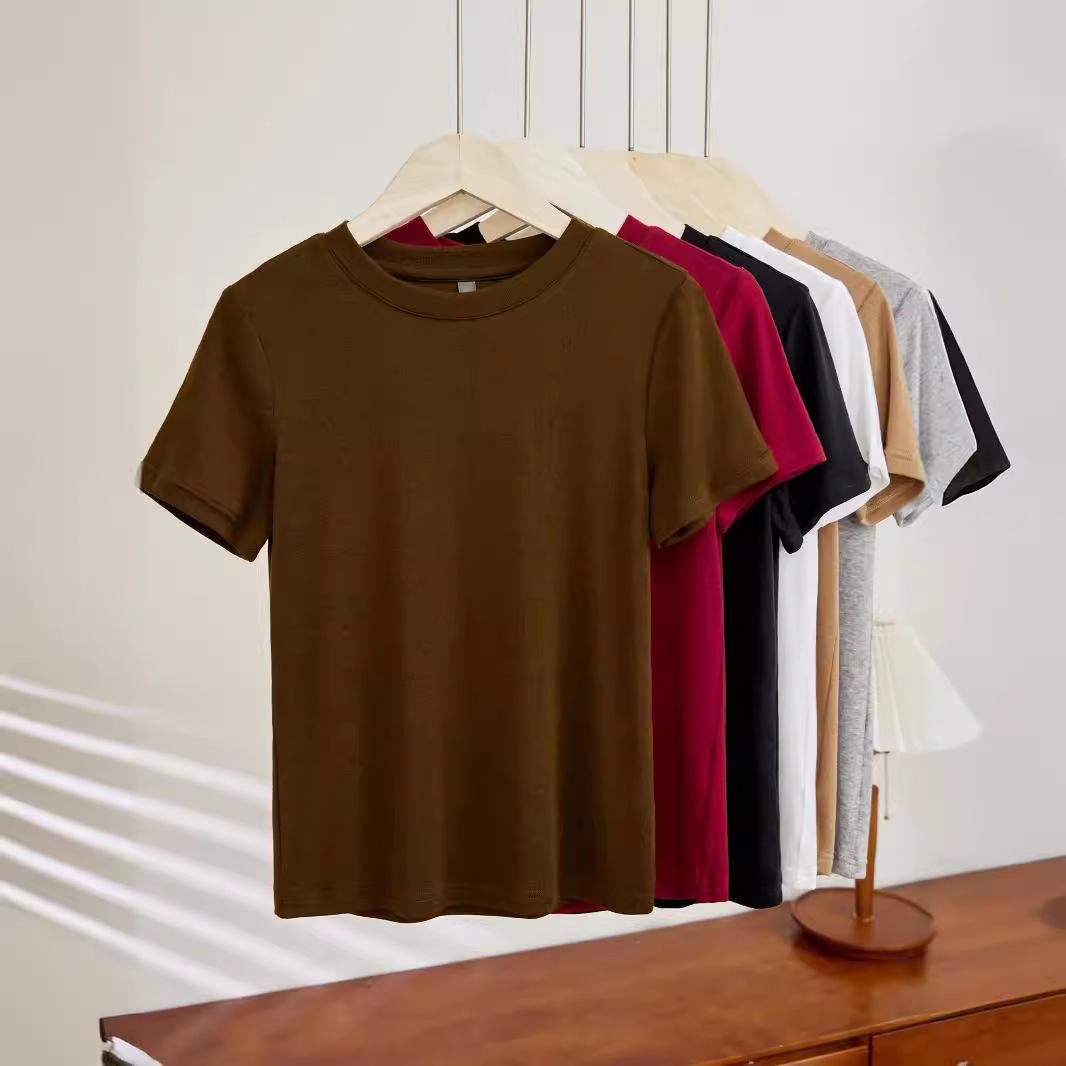 하이 퀄리티 텐셀 울 마스크 티셔츠 여성용 얇은 여름 새로운 Lyocell 라운드 넥 분위기 어깨 탑