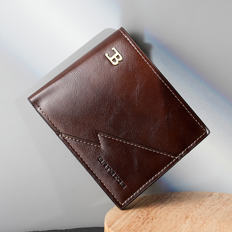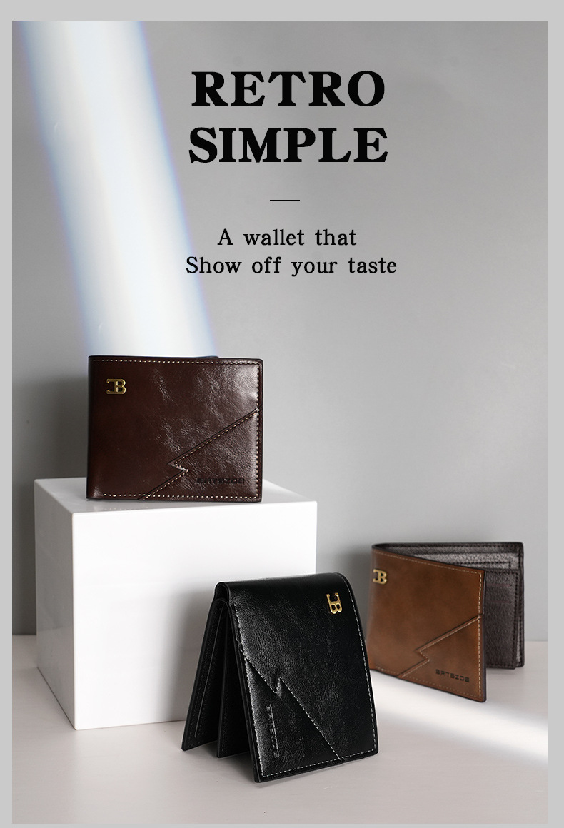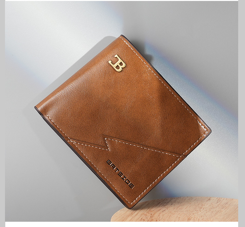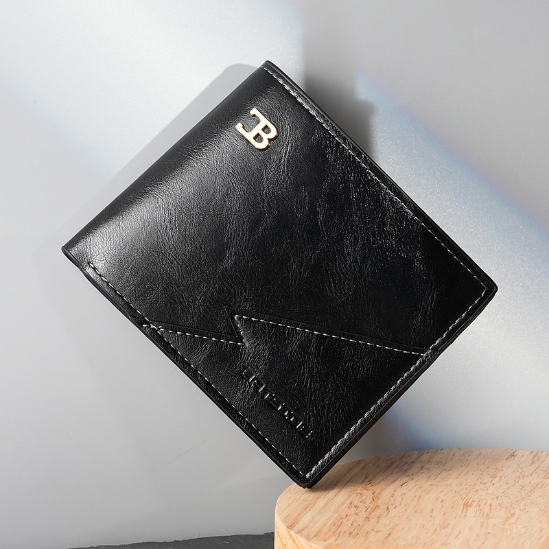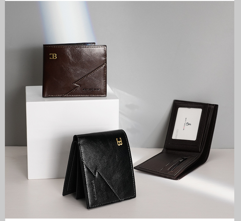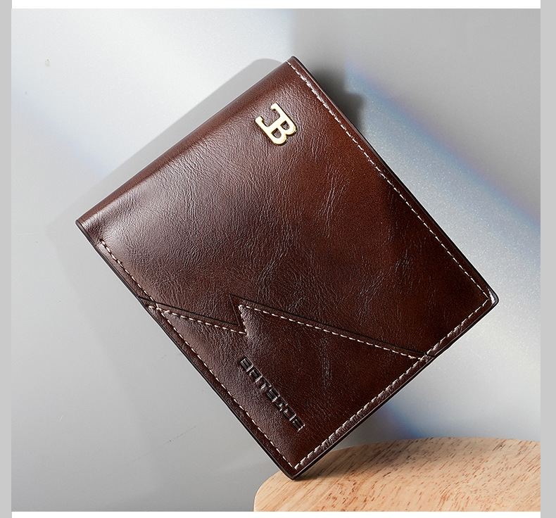 국경 간 클래식 남성 비즈니스 캐주얼 지갑 빈티지 지퍼 짧은 접힘 오일 왁스 가죽 신용 카드 홀더 동전 지갑스토어 가기
