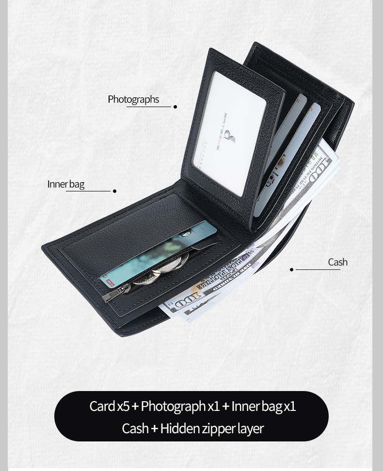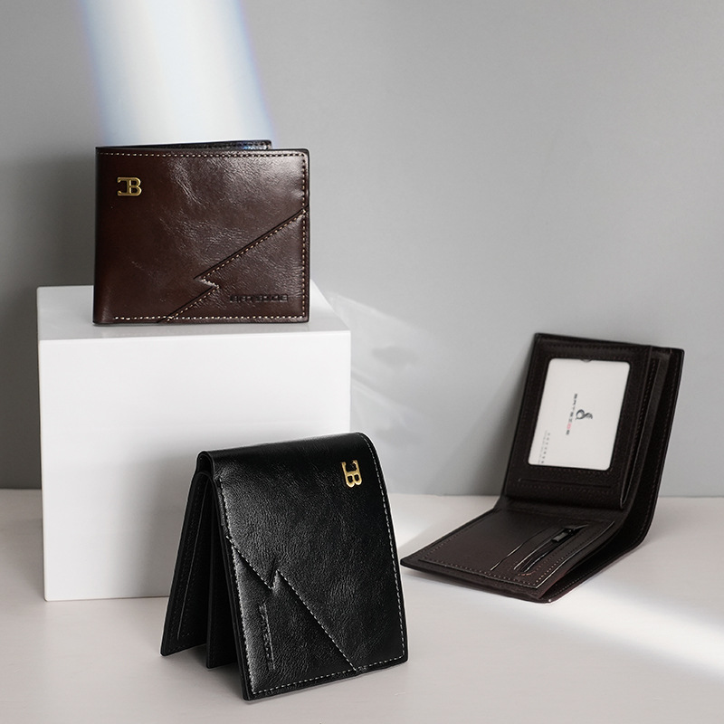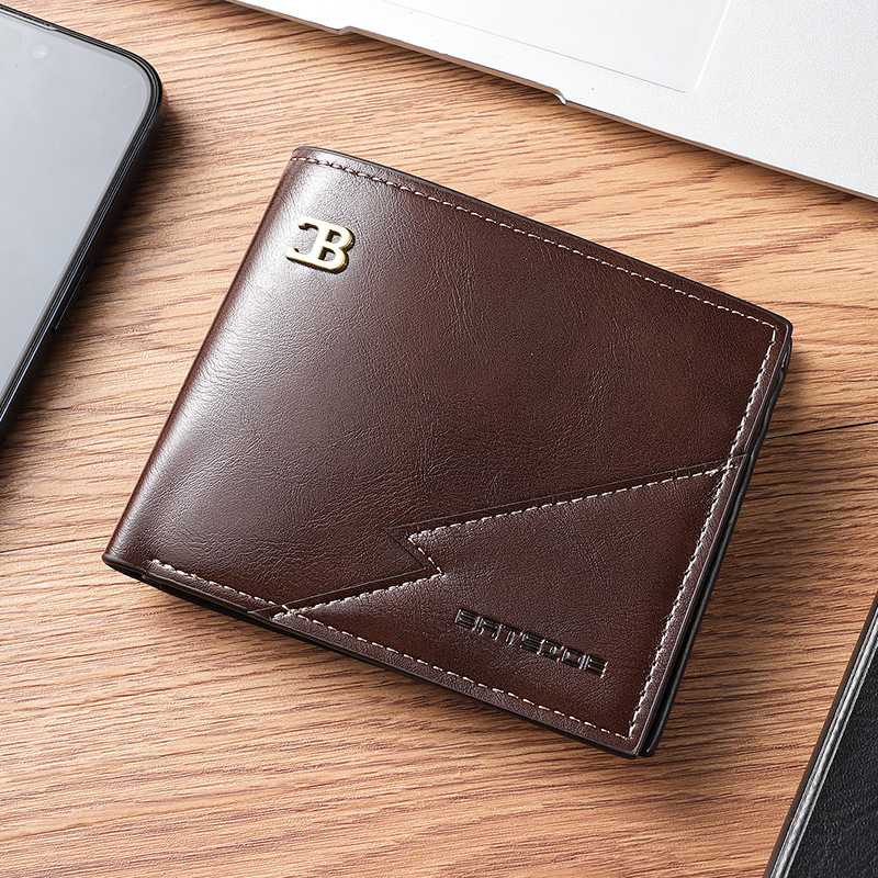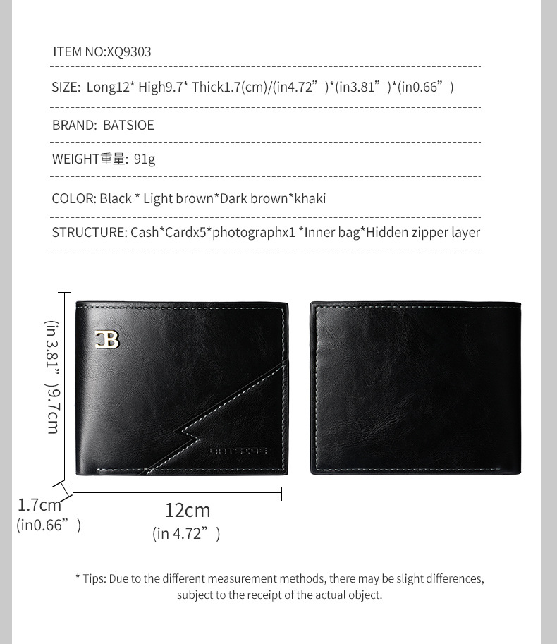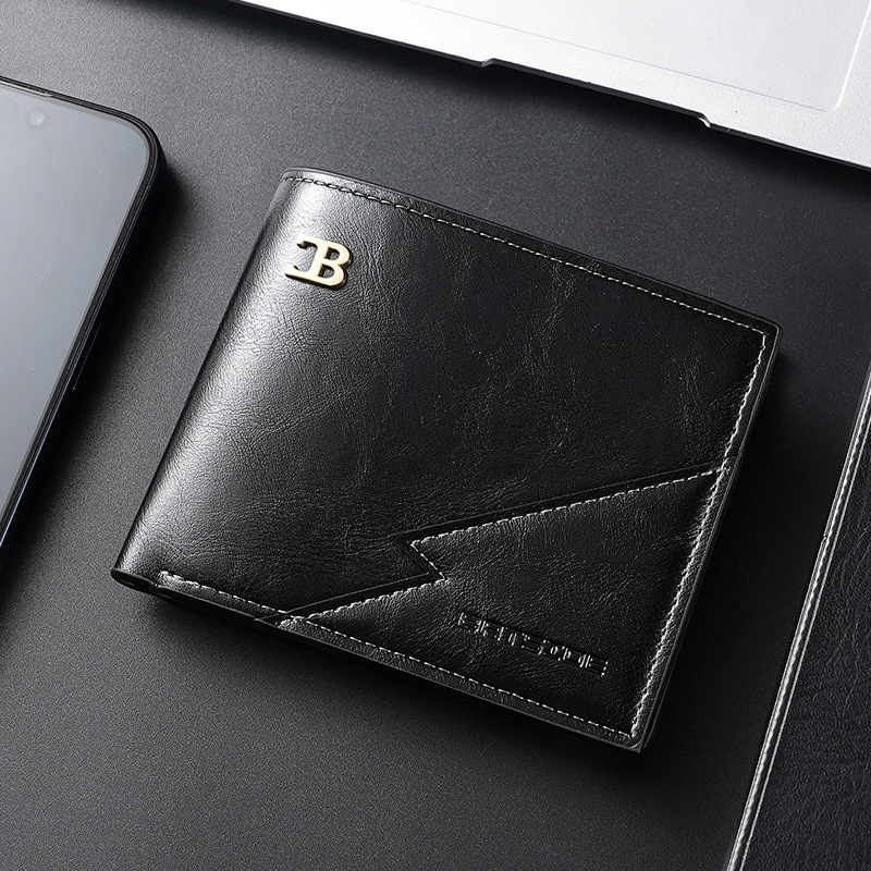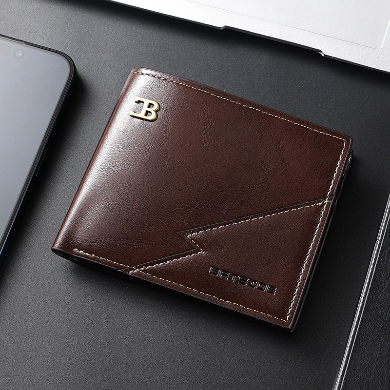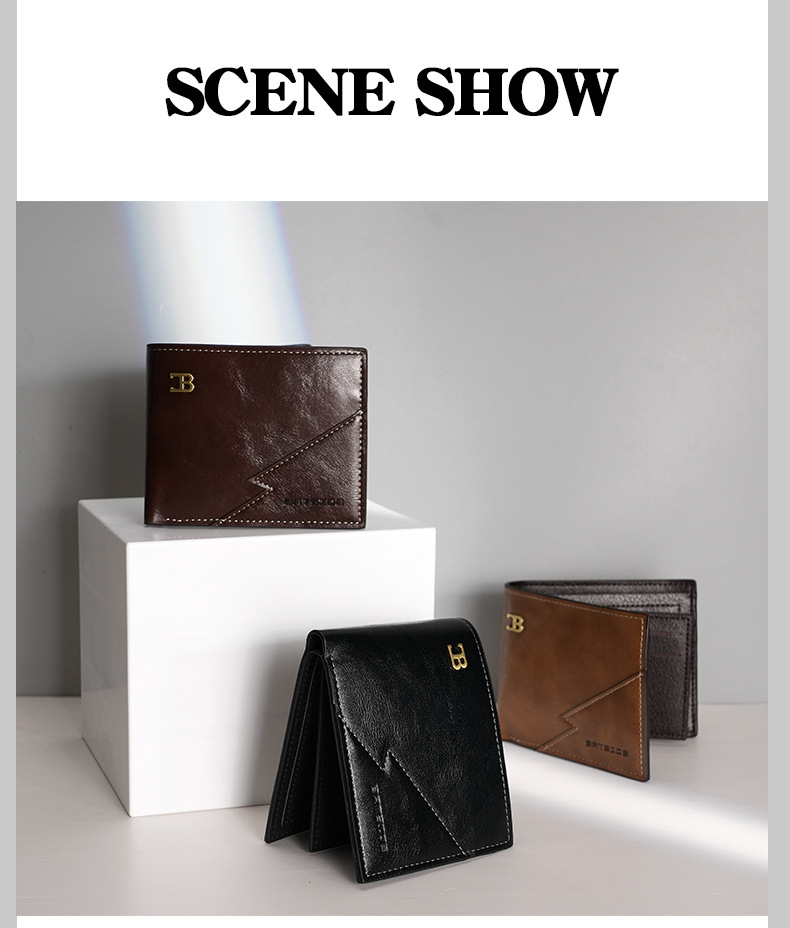 국경 간 클래식 남성 비즈니스 캐주얼 지갑 빈티지 지퍼 짧은 접힘 오일 왁스 가죽 신용 카드 홀더 동전 지갑