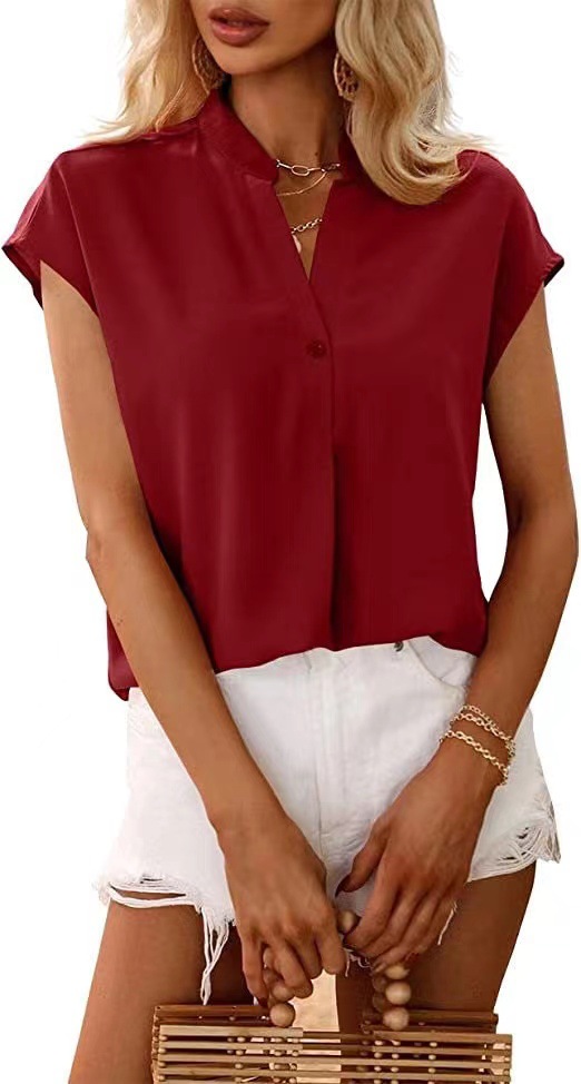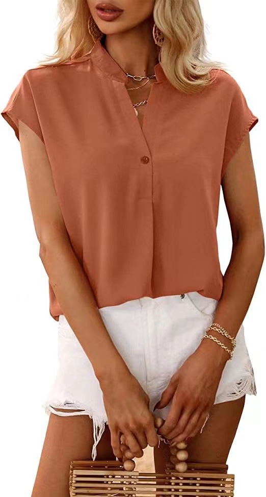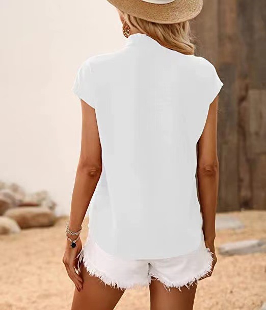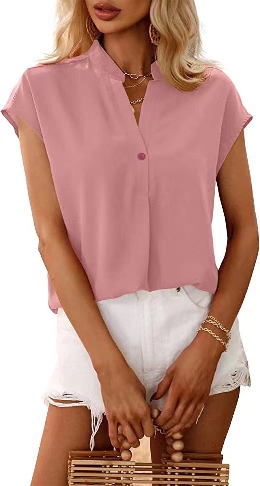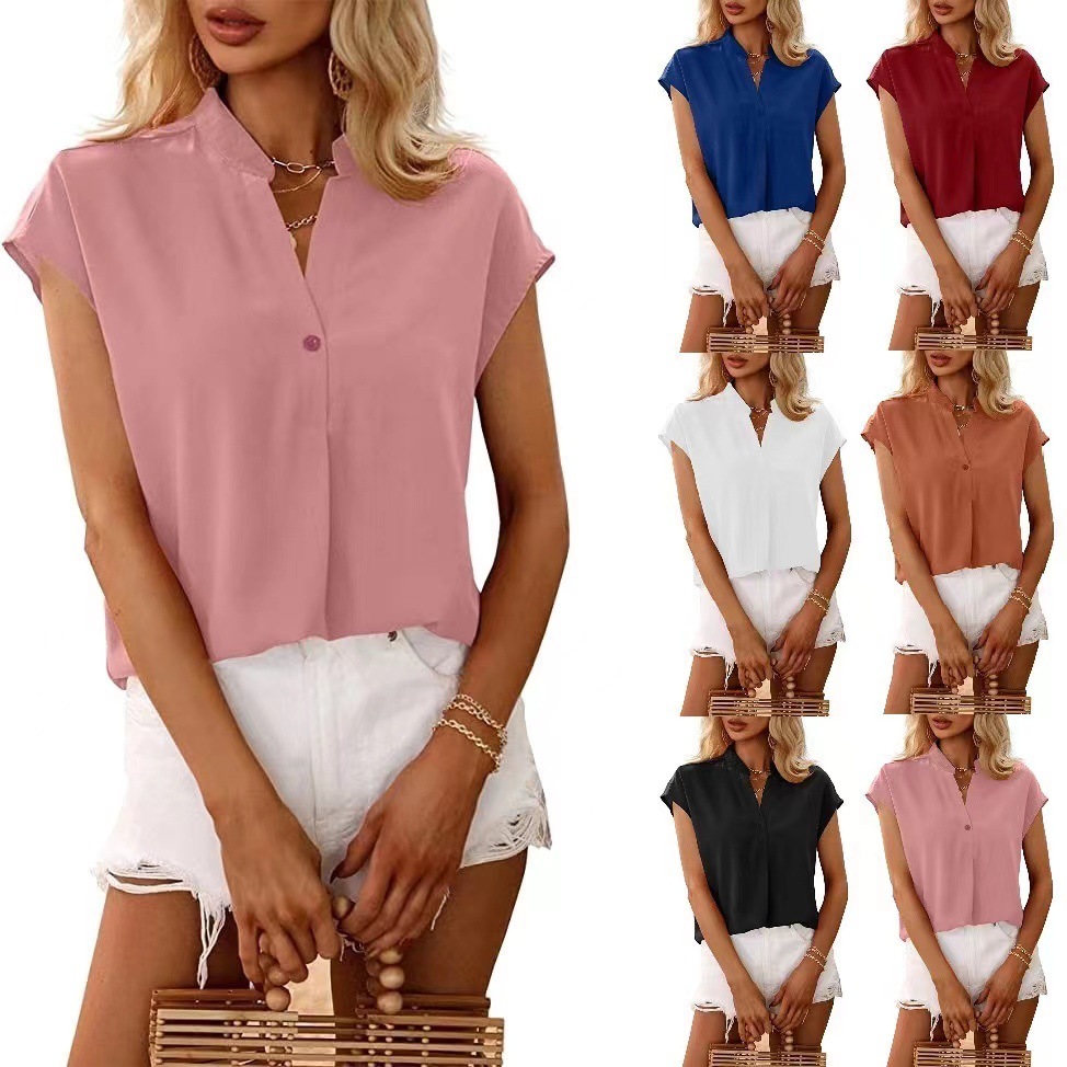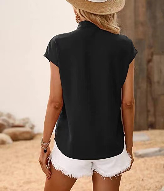 국경 간 2025는 아마존 이베이의 새로운 유럽과 미국의 스탠드 칼라 민소매 루즈한 새 쉬폰 셔츠 캐주얼 탑을 독점적으로 공급합니다.스토어 가기