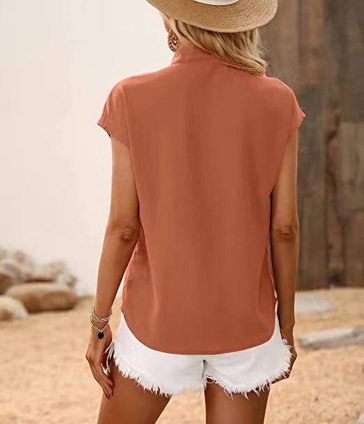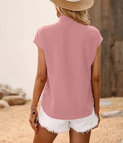 국경 간 2025는 아마존 이베이의 새로운 유럽과 미국의 스탠드 칼라 민소매 루즈한 새 쉬폰 셔츠 캐주얼 탑을 독점적으로 공급합니다.