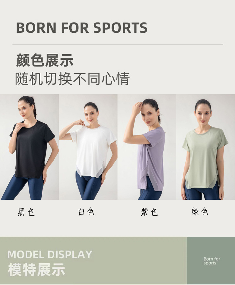 새로운 느슨한 플러스 사이즈 스포츠 요가 블라우스 슬림 통기성 피트니스 옷 라운드 넥 탑 빠른 건조 여성스토어 가기