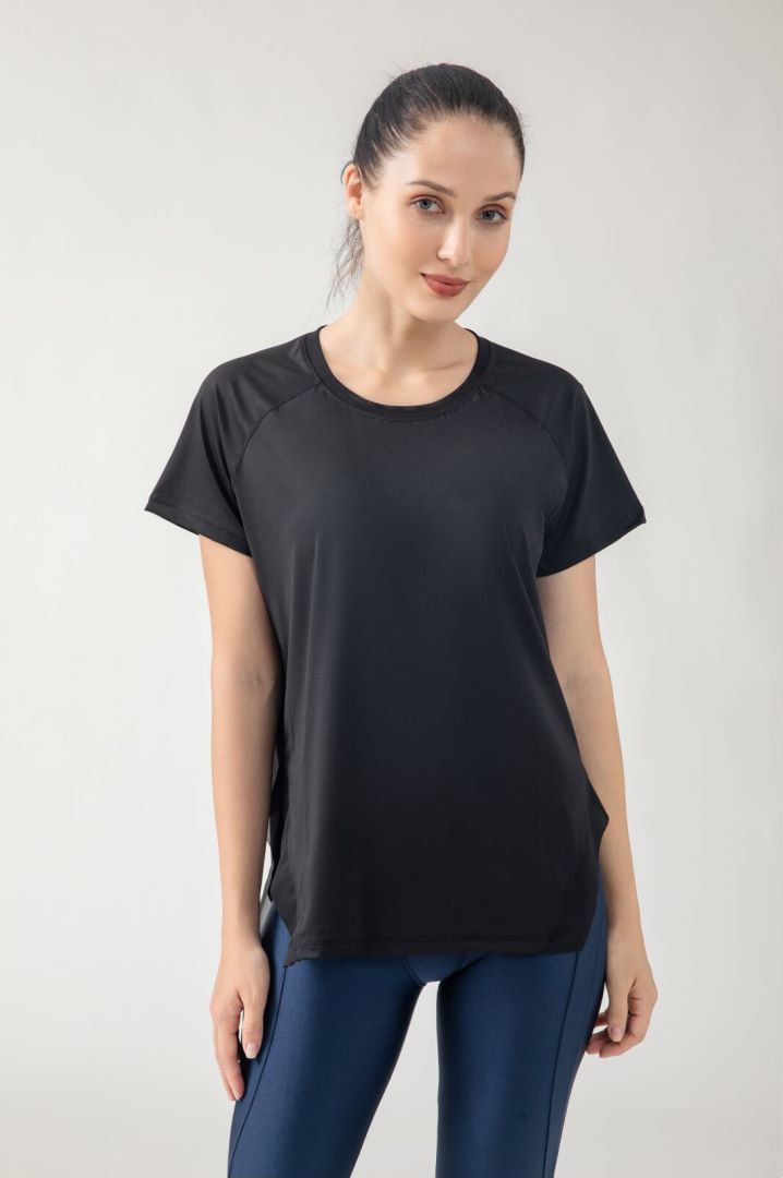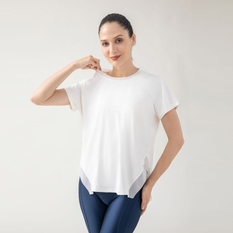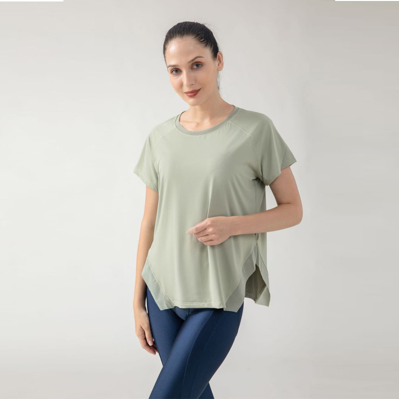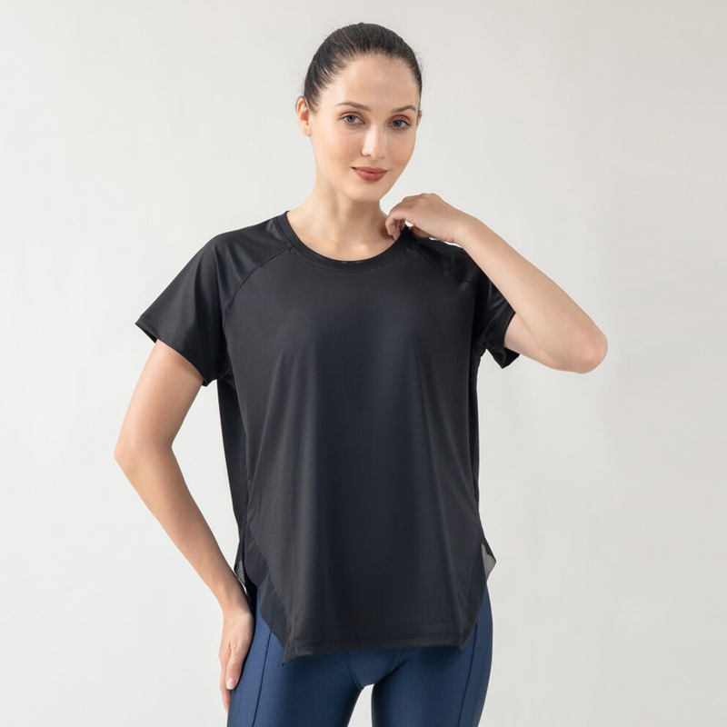 새로운 느슨한 플러스 사이즈 스포츠 요가 블라우스 슬림 통기성 피트니스 옷 라운드 넥 탑 빠른 건조 여성