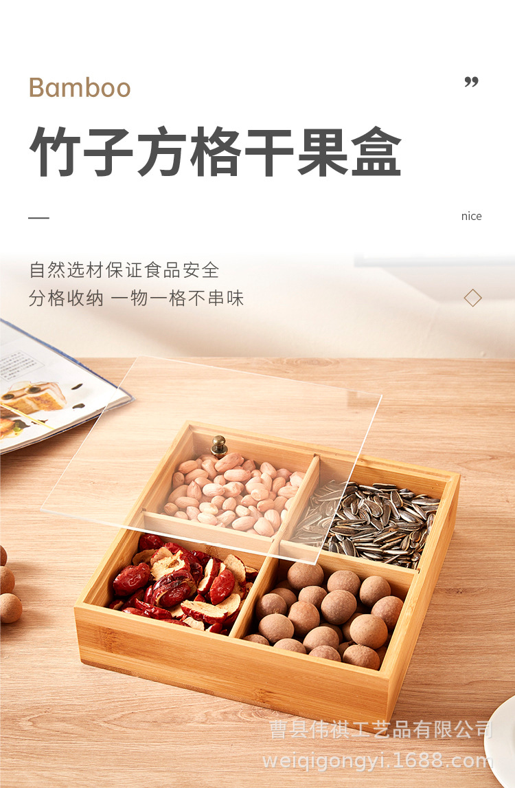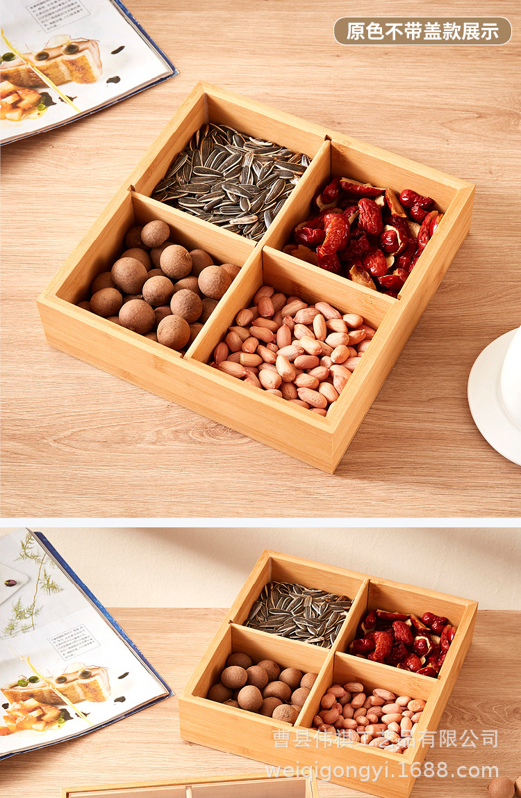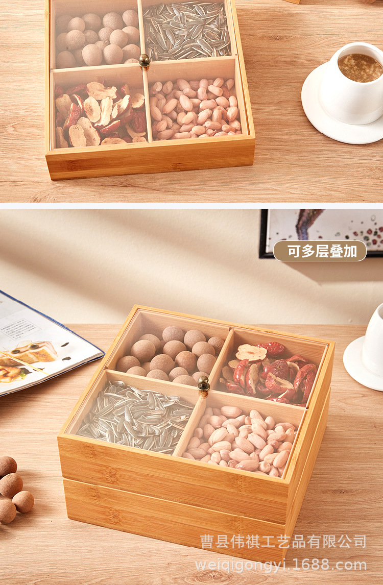 새로운 스타일의 건과일 상자, 심플한 거실용 가정용 뚜껑 있는 원목 견과류/캔디 상자, 차를 끓일 때 사용하는 고급 새해 과일 접시스토어 가기