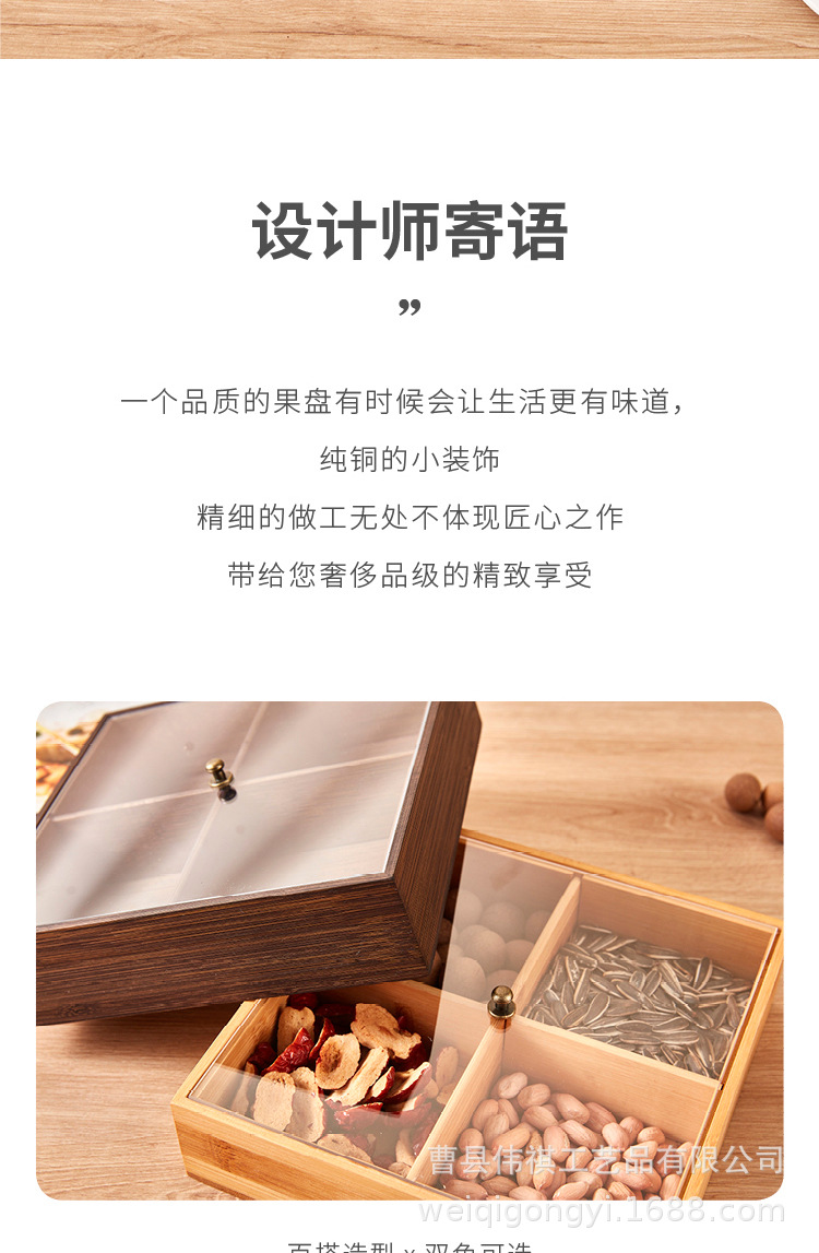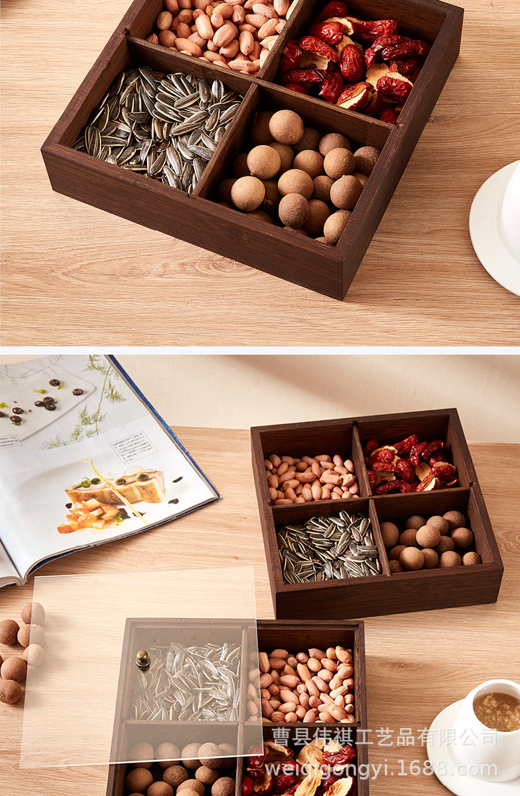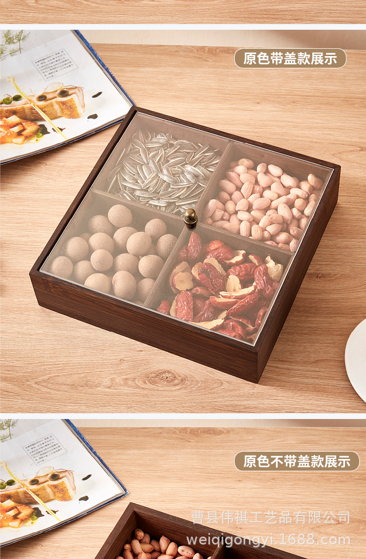 새로운 스타일의 건과일 상자, 심플한 거실용 가정용 뚜껑 있는 원목 견과류/캔디 상자, 차를 끓일 때 사용하는 고급 새해 과일 접시