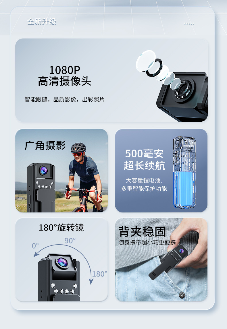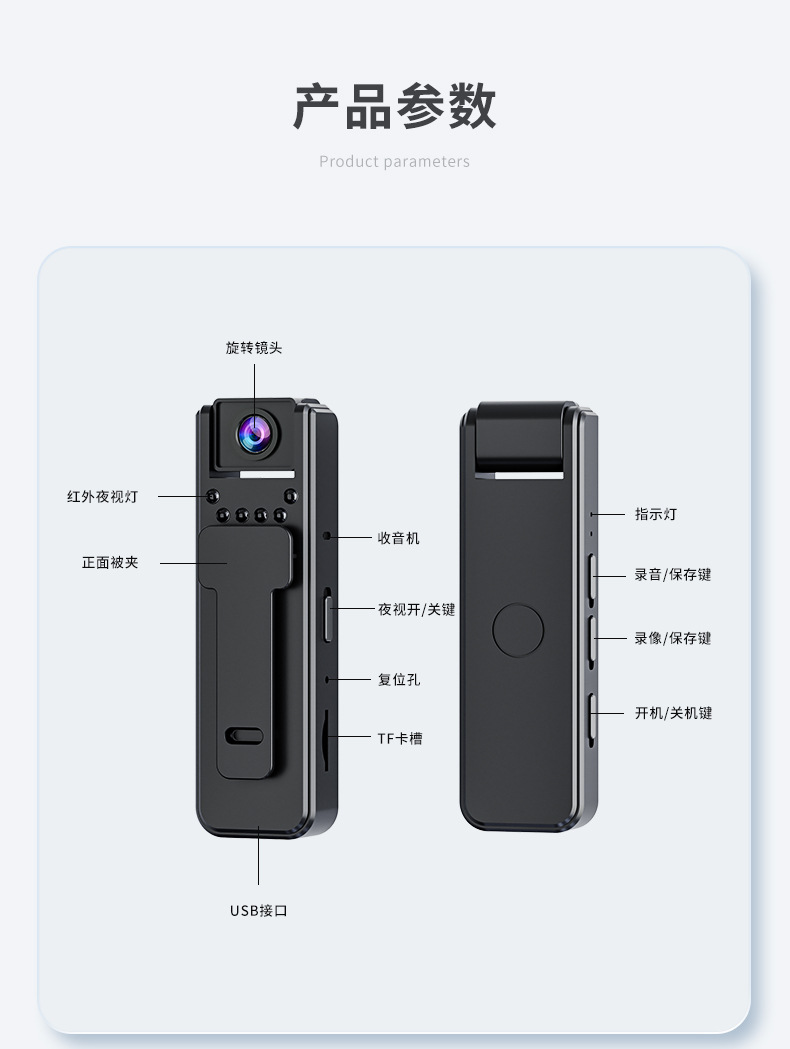 A8 휴대용 녹화기, 가슴에 착용하는 클립형 카메라, 고화질 회의 카메라, 적외선 야간 투시경, 법 집행 기관용
