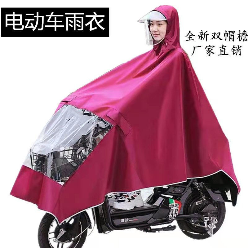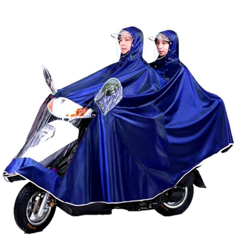 [우표의 한 조각] 큰 두꺼운 전기 세발 자전거 비옷 모자 챙김 배터리 오토바이 싱글 더블 판초 방수