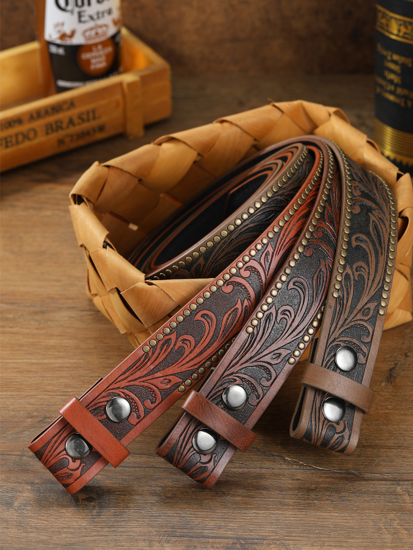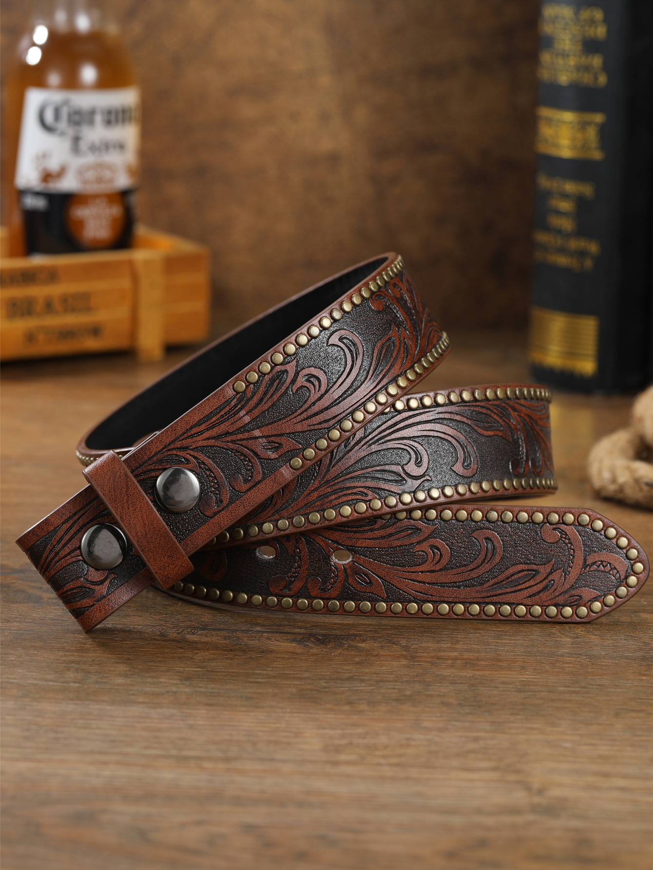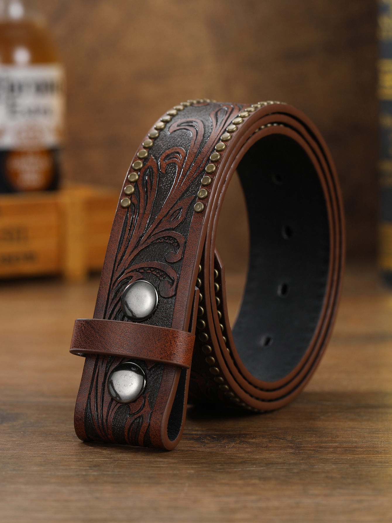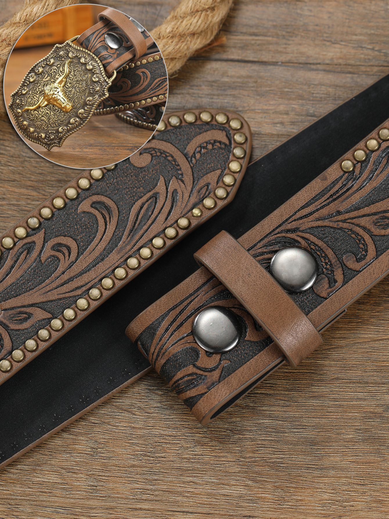 국경 간 펑크 스타일 벨트 복고풍 트렌드 엠보싱 플레이트 버클 PU 가죽 버클 벨트 서부 데님 벨트 남성