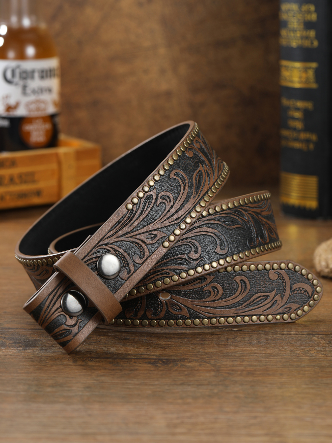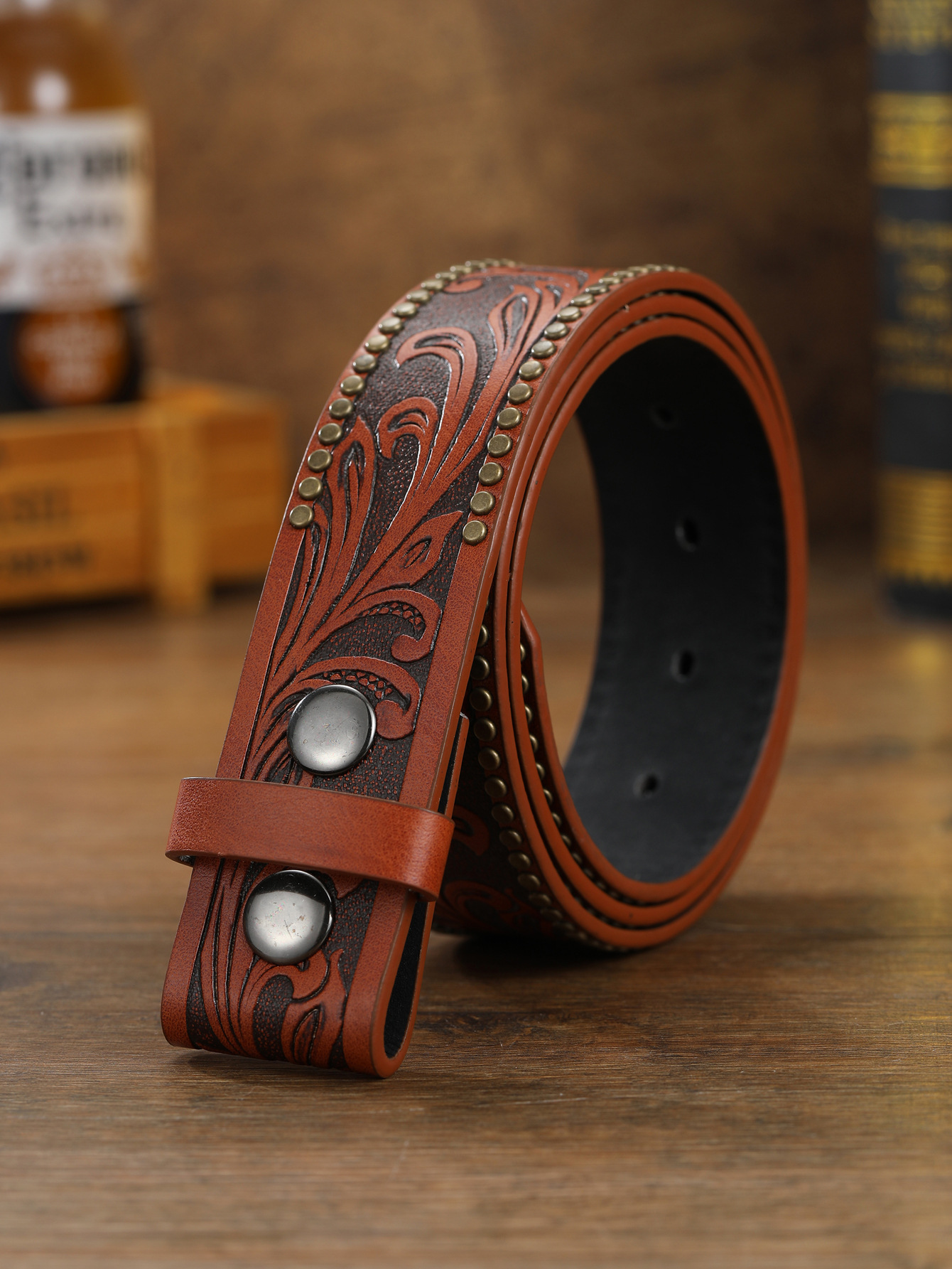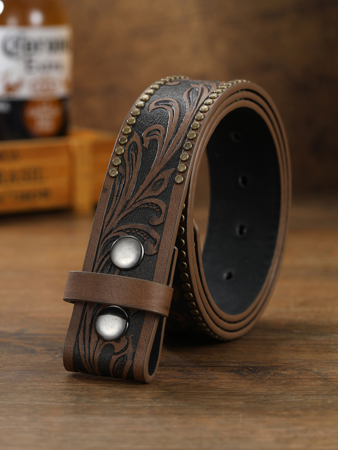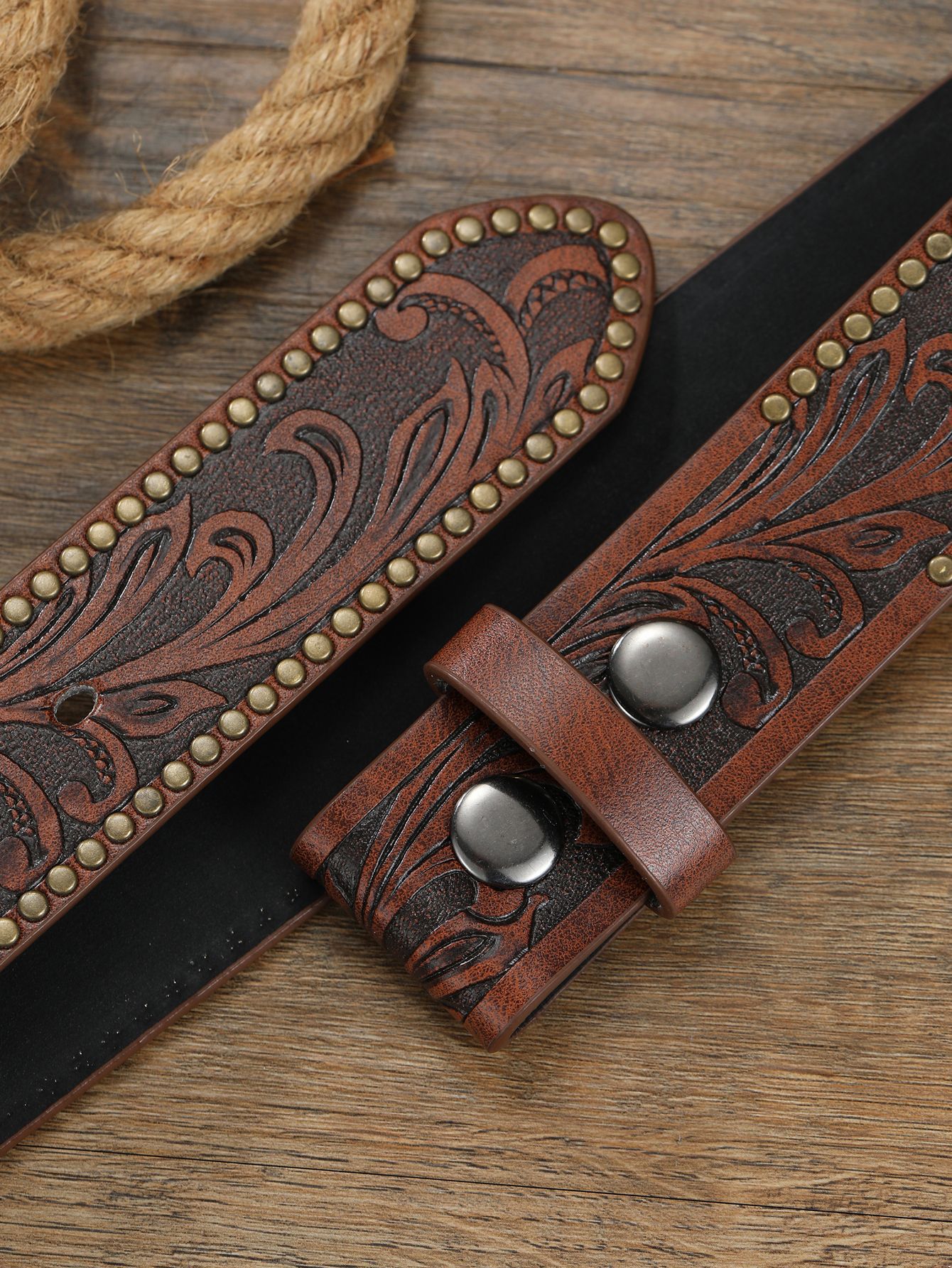 국경 간 펑크 스타일 벨트 복고풍 트렌드 엠보싱 플레이트 버클 PU 가죽 버클 벨트 서부 데님 벨트 남성