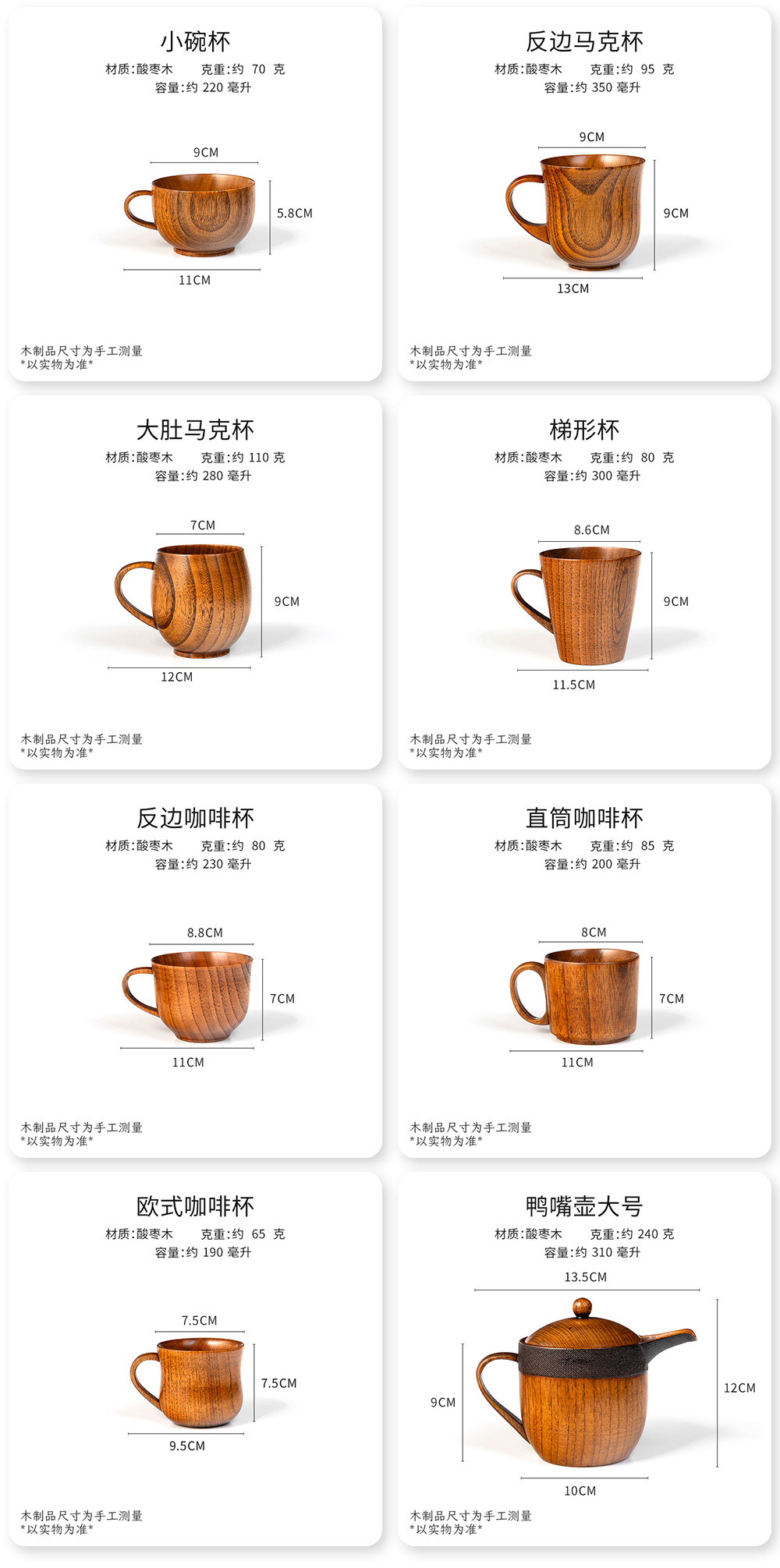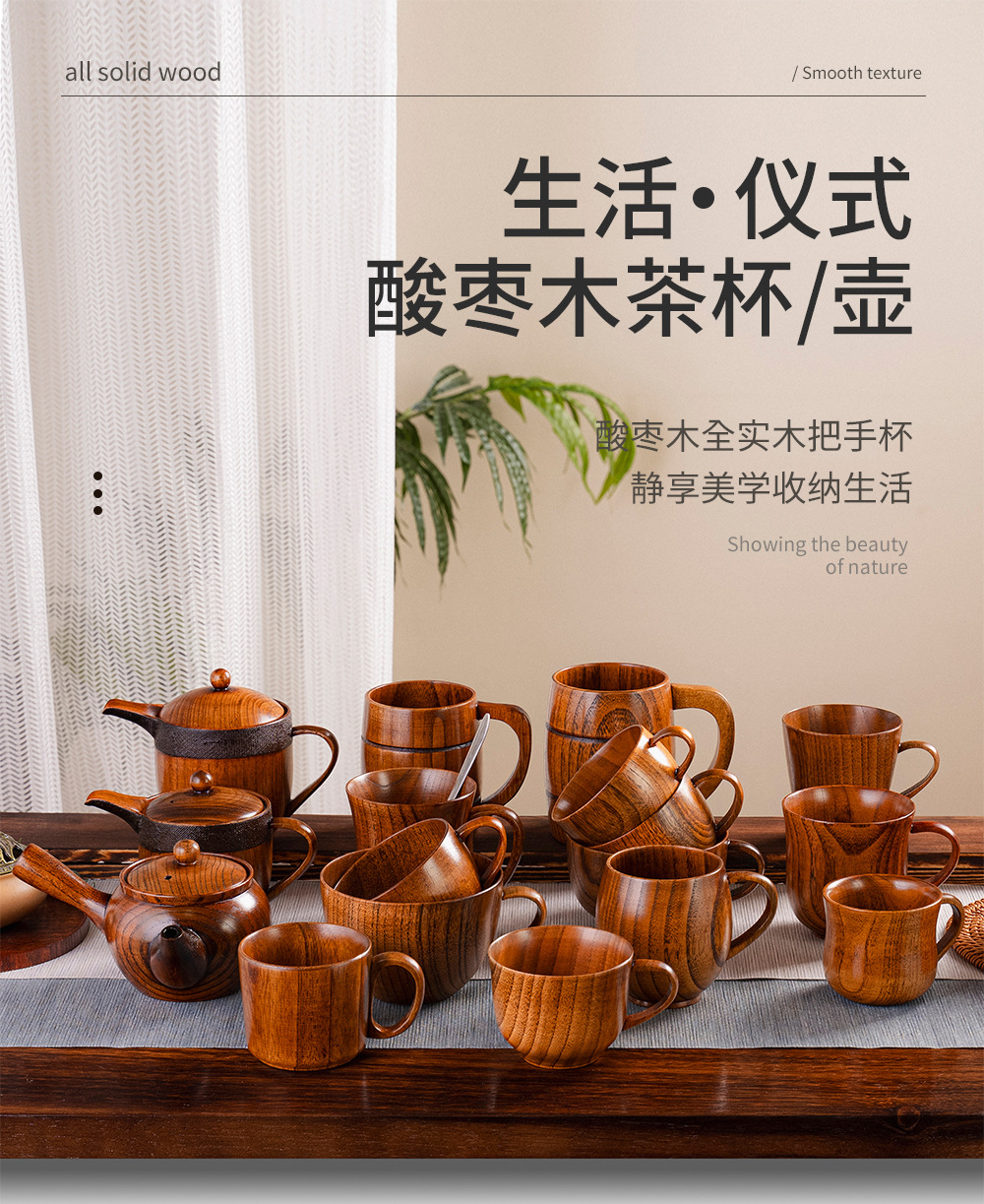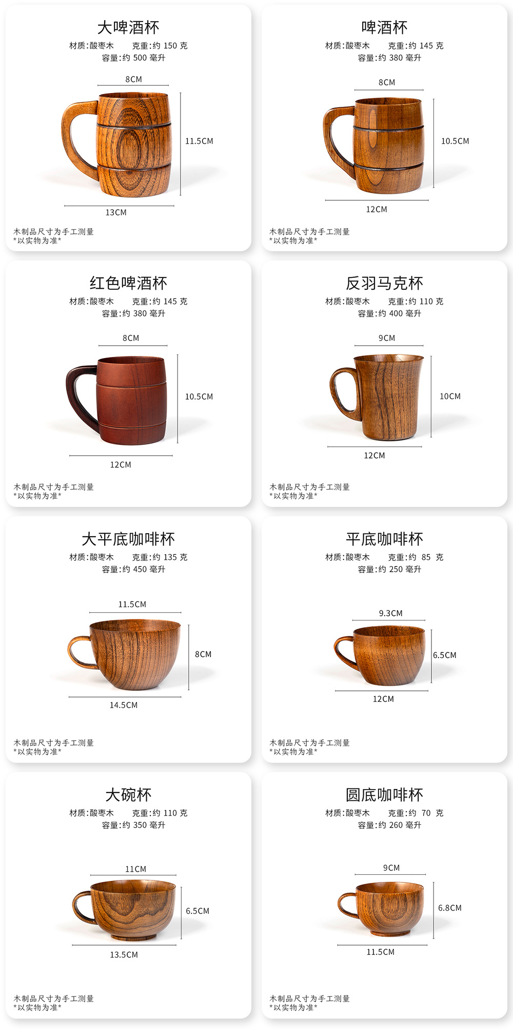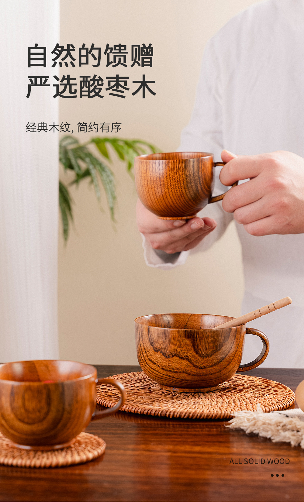 공장 도매 대추 나무 배꼽 컵 가정용 머그잔 나무 물 컵 핸들 맥주 컵 커피 컵 찻잔스토어 가기