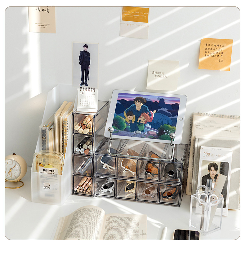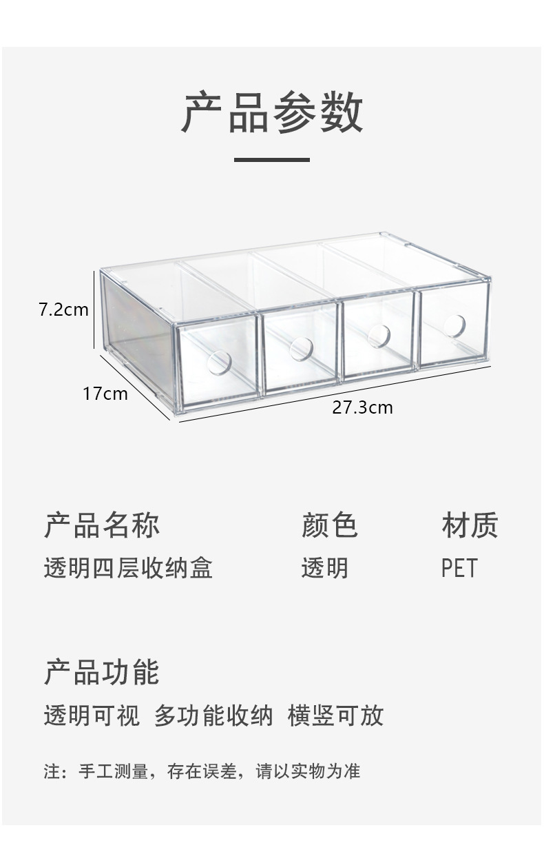 재고 투명한 4 칸 서랍 상자 데스크탑 간단한 저장 상자 일 던지기 작은 선글라스 방진 저장 상자 마감 상자