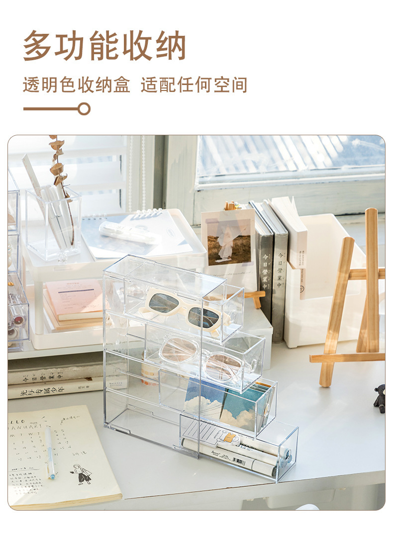 재고 투명한 4 칸 서랍 상자 데스크탑 간단한 저장 상자 일 던지기 작은 선글라스 방진 저장 상자 마감 상자스토어 가기