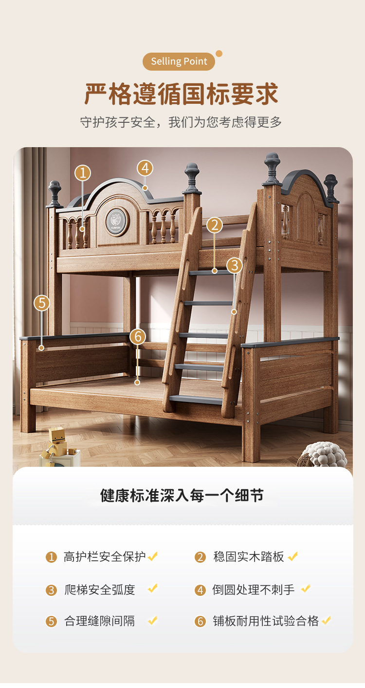 골드 캐비닛 가구 이층침대 원목 사다리형 이층침대 올원목 높낮이침대 어린이침대 1.5m 원목침대