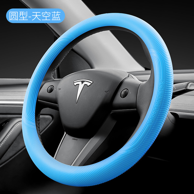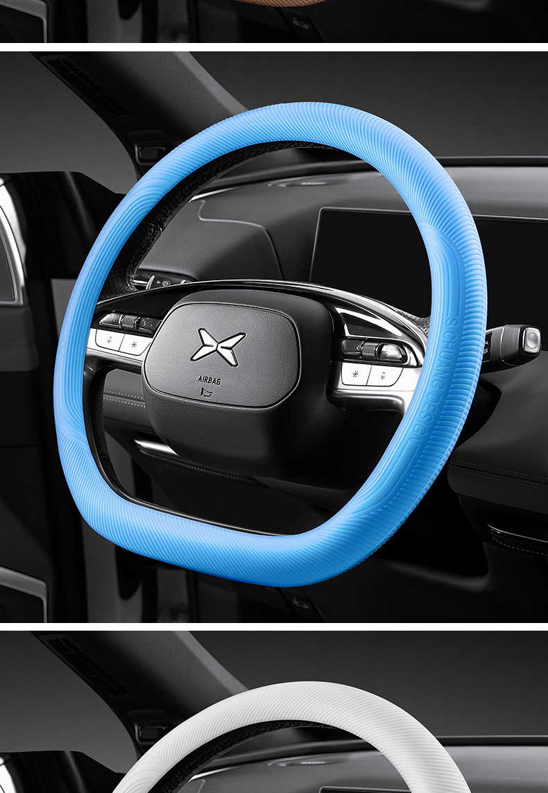 자동차 여름 얼음 느낌 초박형 스티어링 휠 커버 미끄럼 방지 실리콘 실리콘 패턴 사계절 올인원 자동차 핸들 커버 남성과 여성을위한 소프트