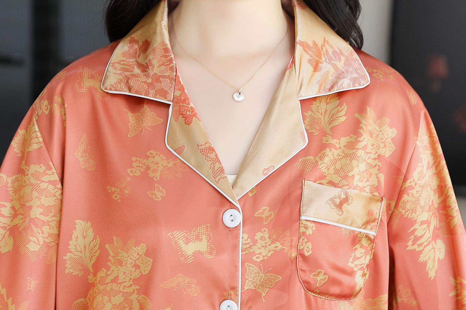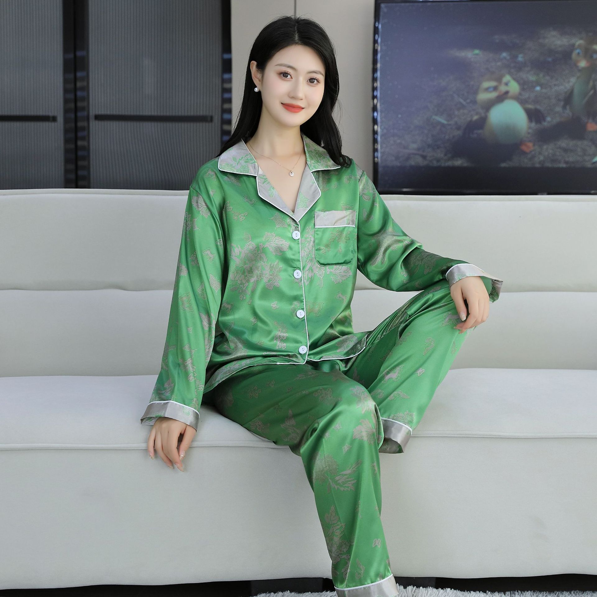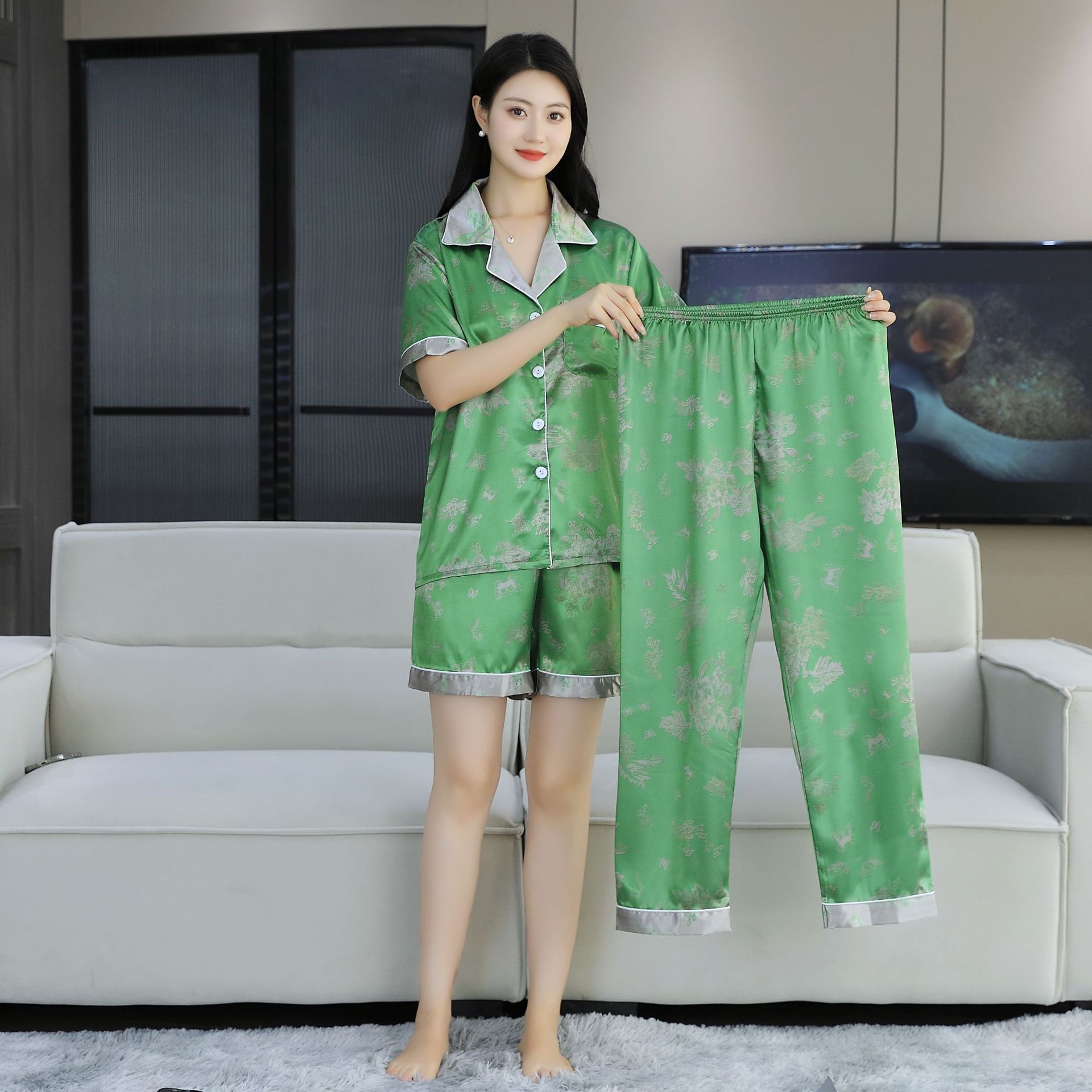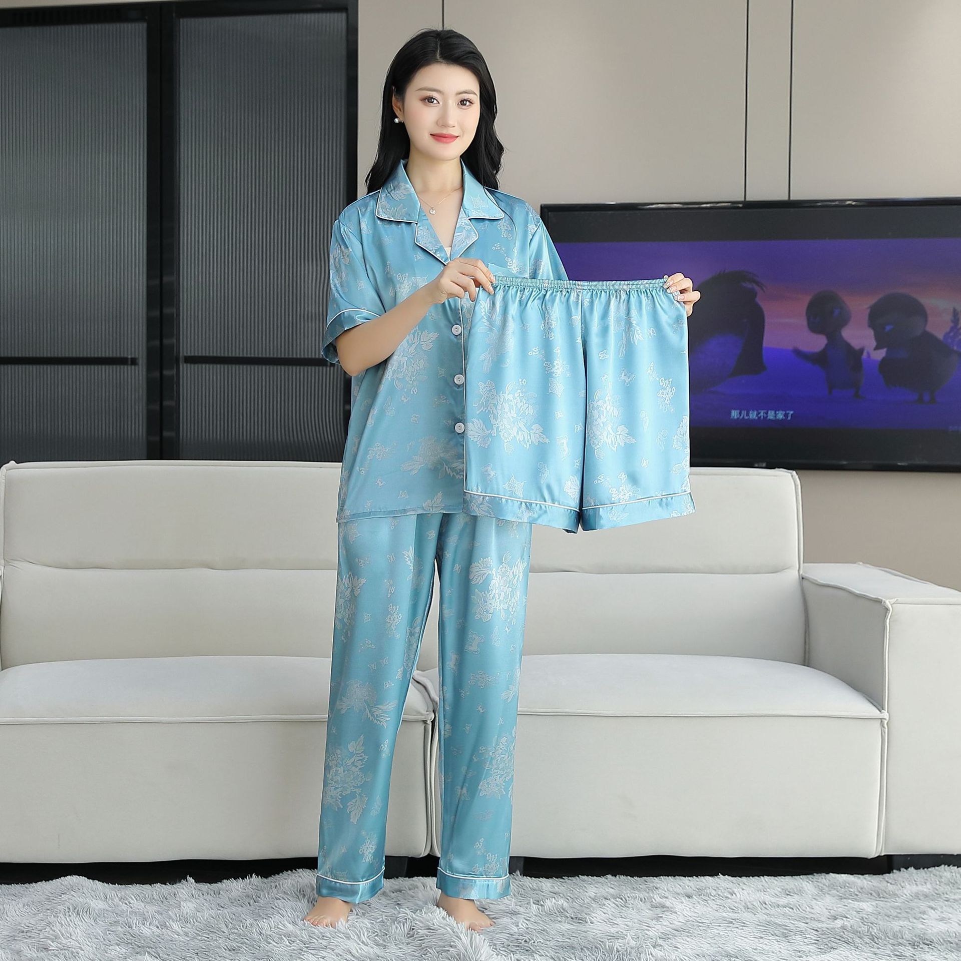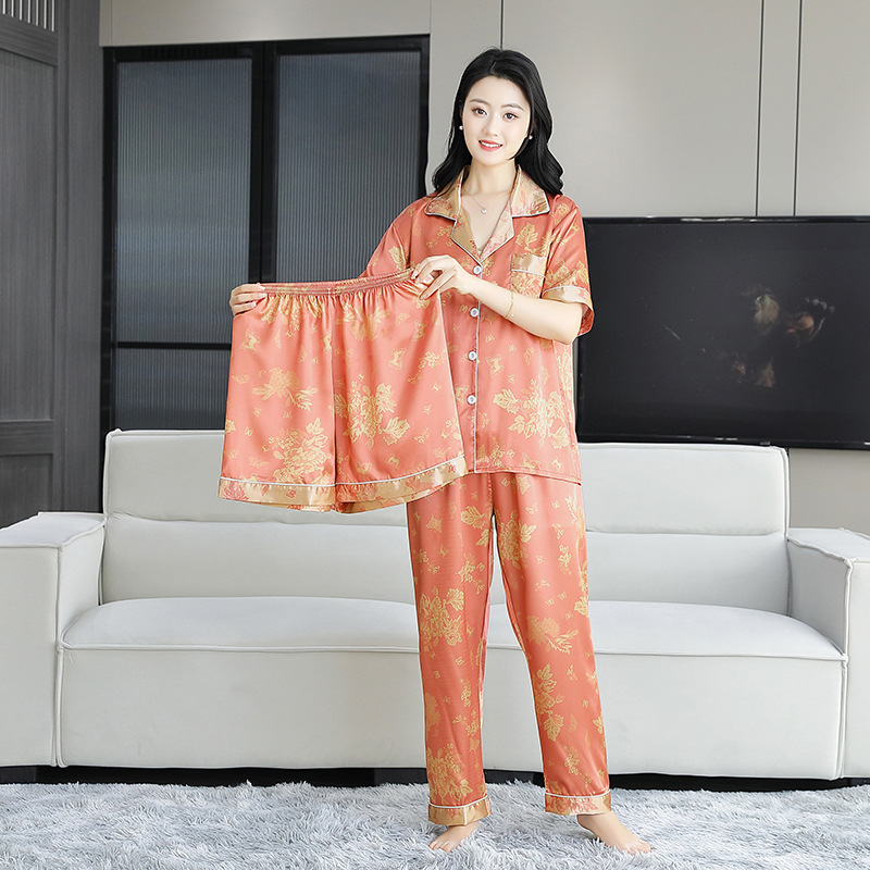 여성용 모조 실크 잠옷, 봄, 가을 3피스 세트, 나비 루즈 스노우 잠옷, 고급스럽고 가벼운 럭셔리 스타일, 집 밖에서 착용 가능스토어 가기