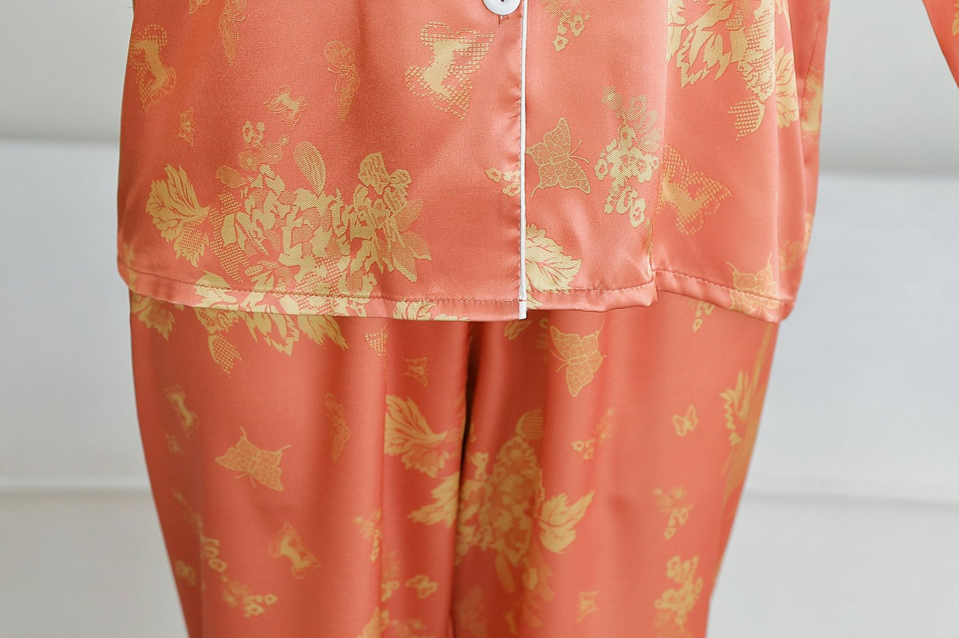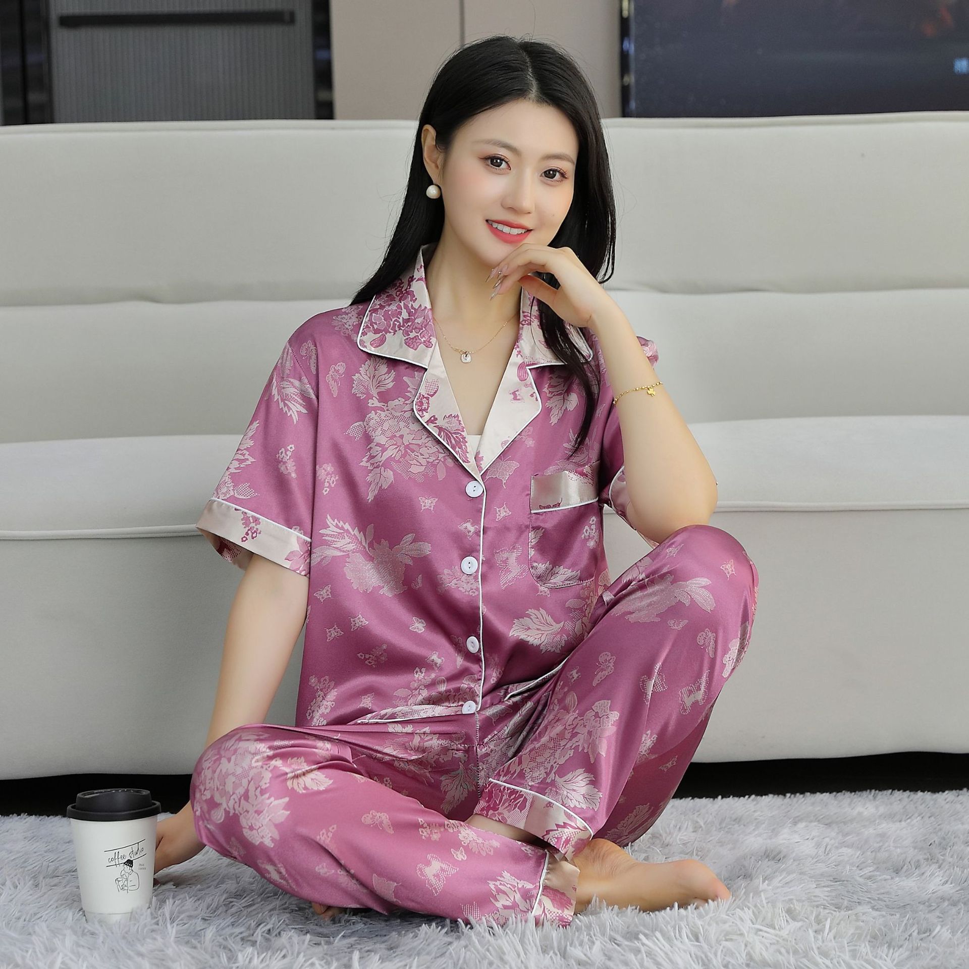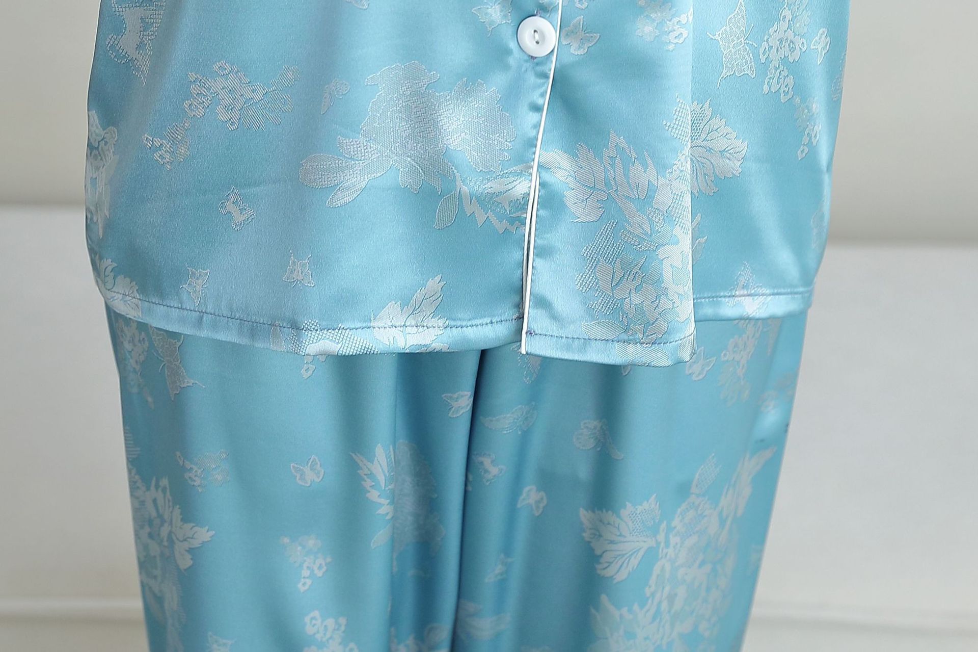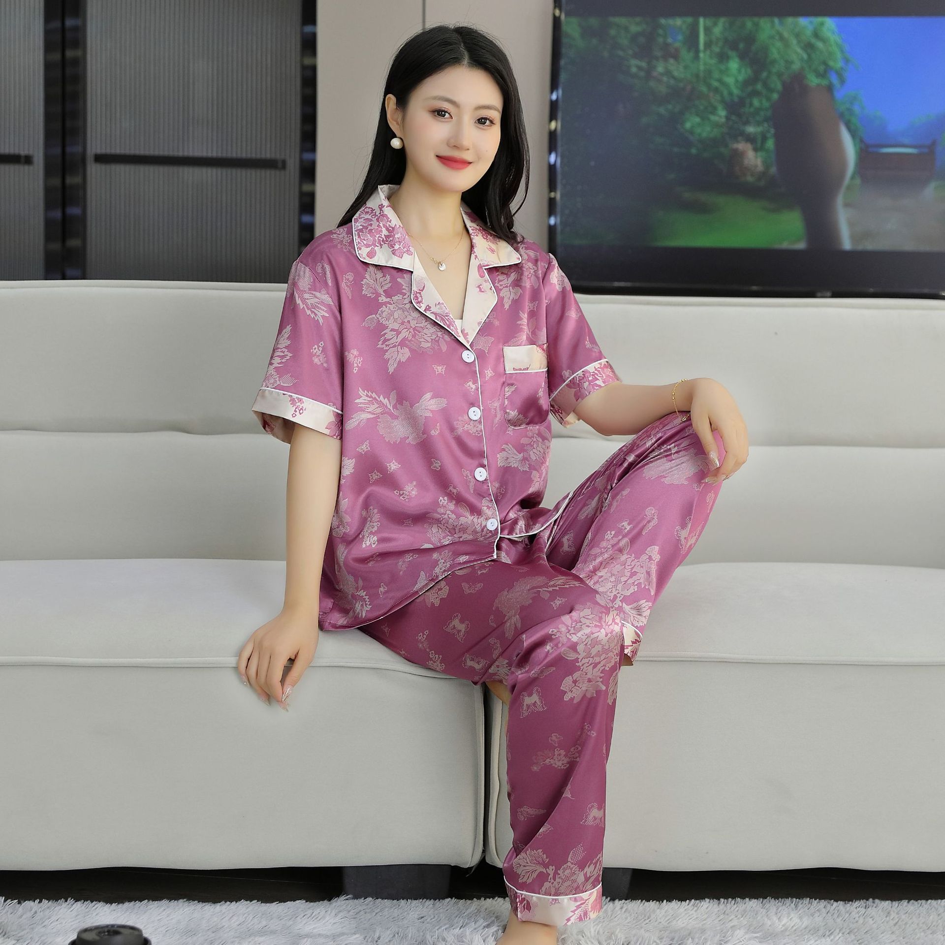 여성용 모조 실크 잠옷, 봄, 가을 3피스 세트, 나비 루즈 스노우 잠옷, 고급스럽고 가벼운 럭셔리 스타일, 집 밖에서 착용 가능스토어 가기