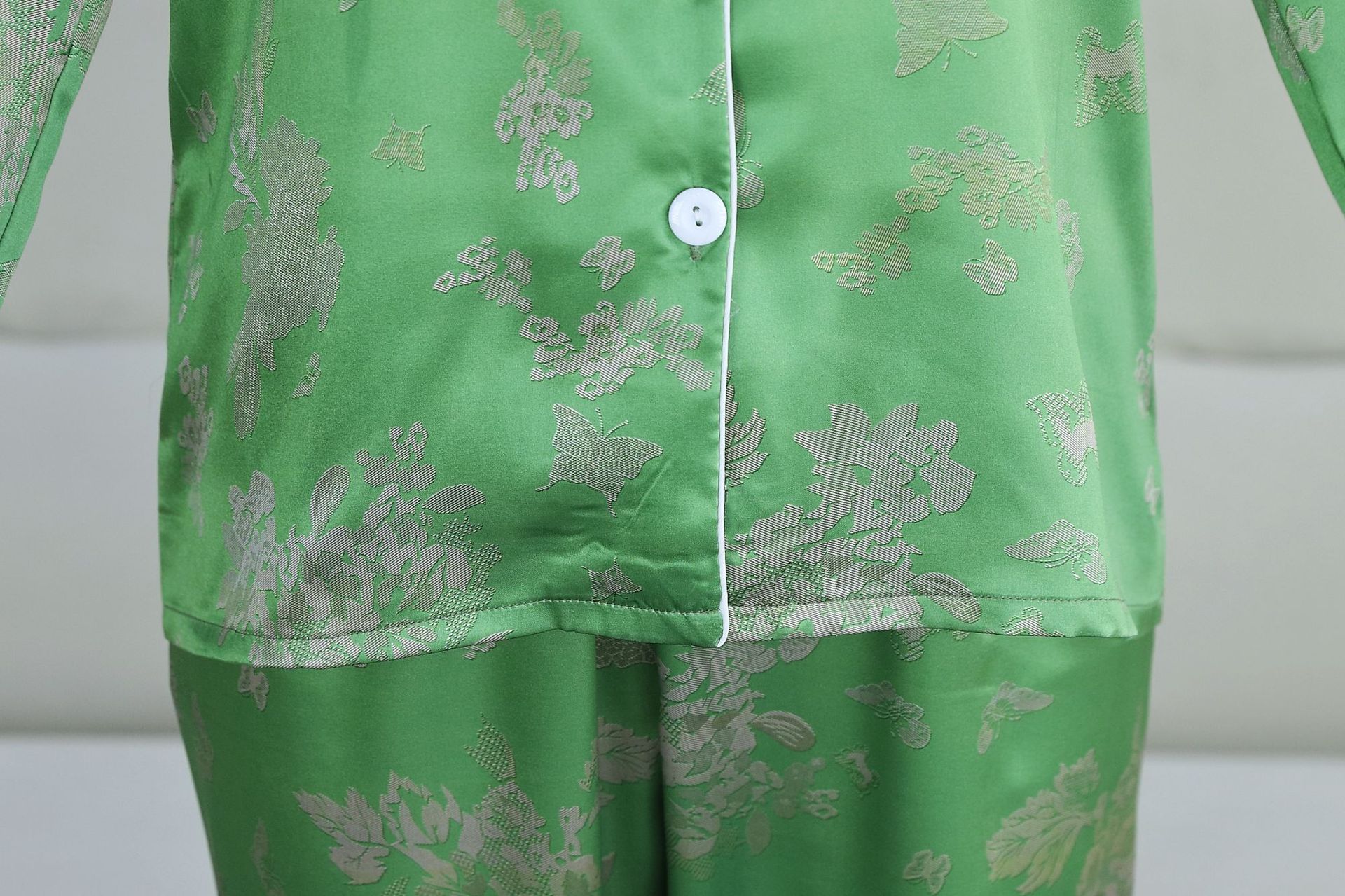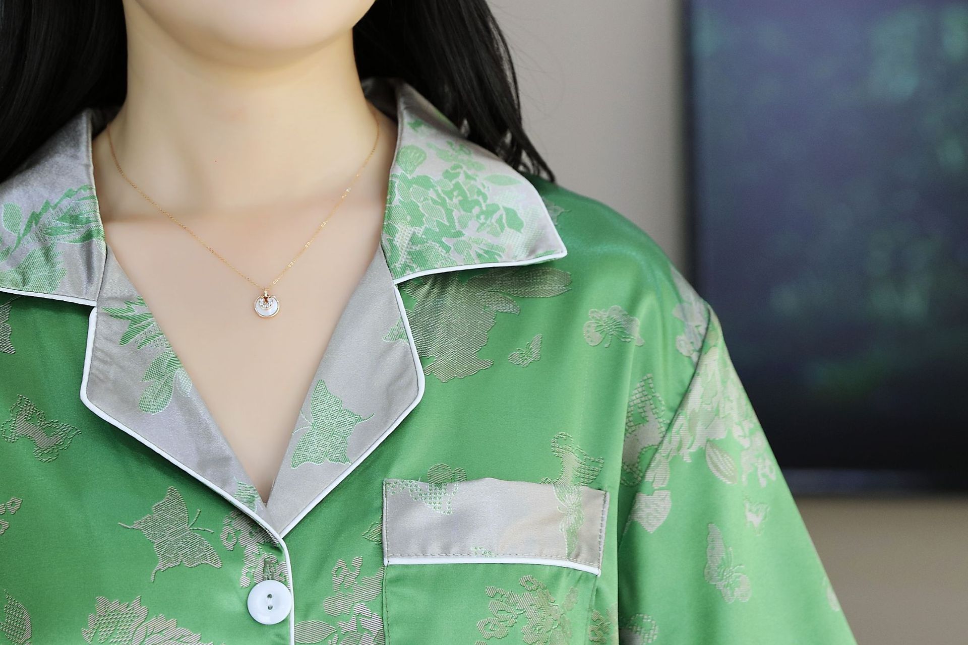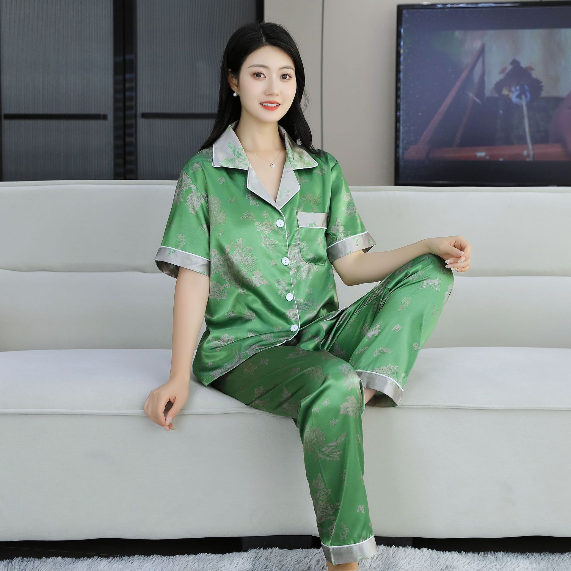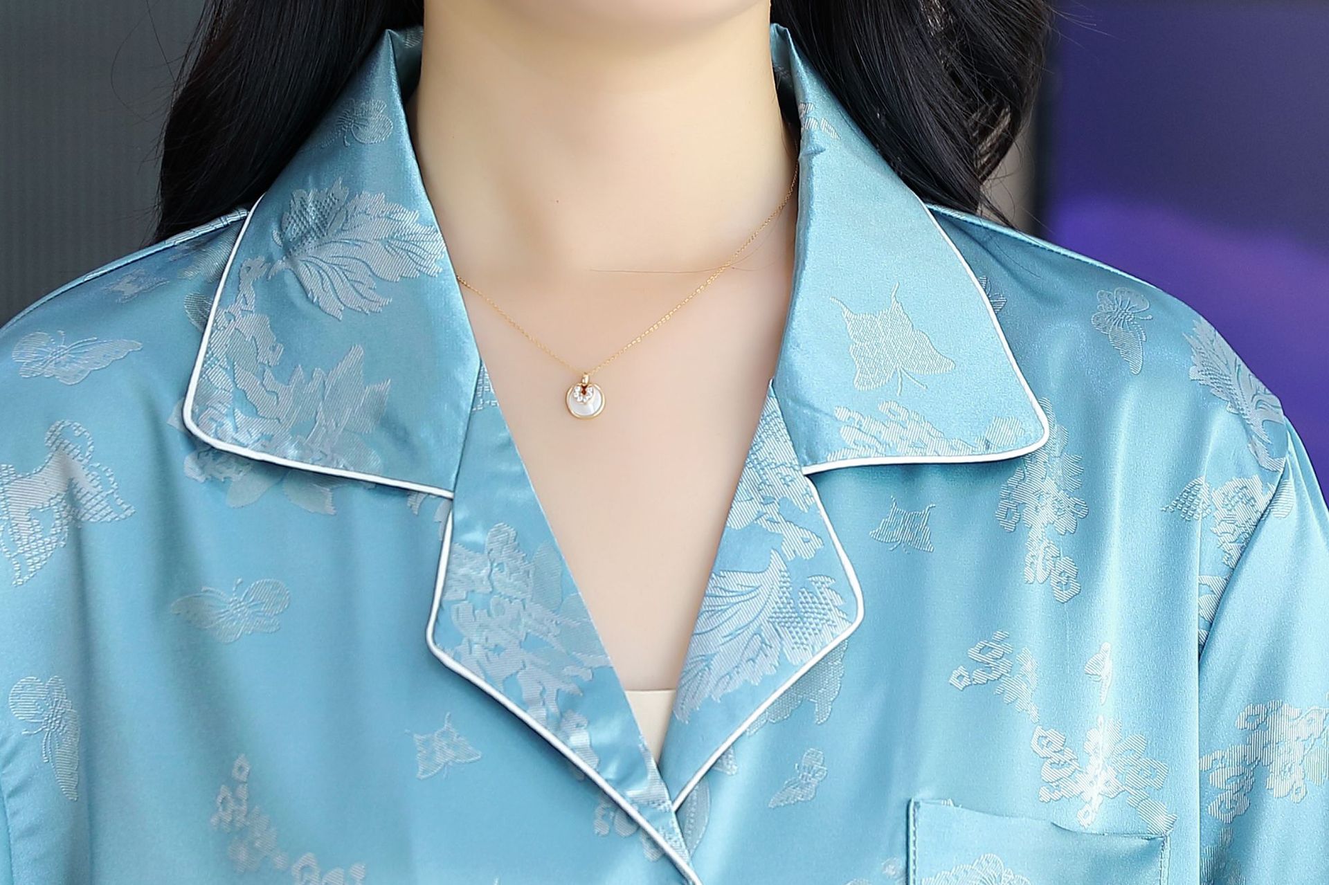 여성용 모조 실크 잠옷, 봄, 가을 3피스 세트, 나비 루즈 스노우 잠옷, 고급스럽고 가벼운 럭셔리 스타일, 집 밖에서 착용 가능스토어 가기