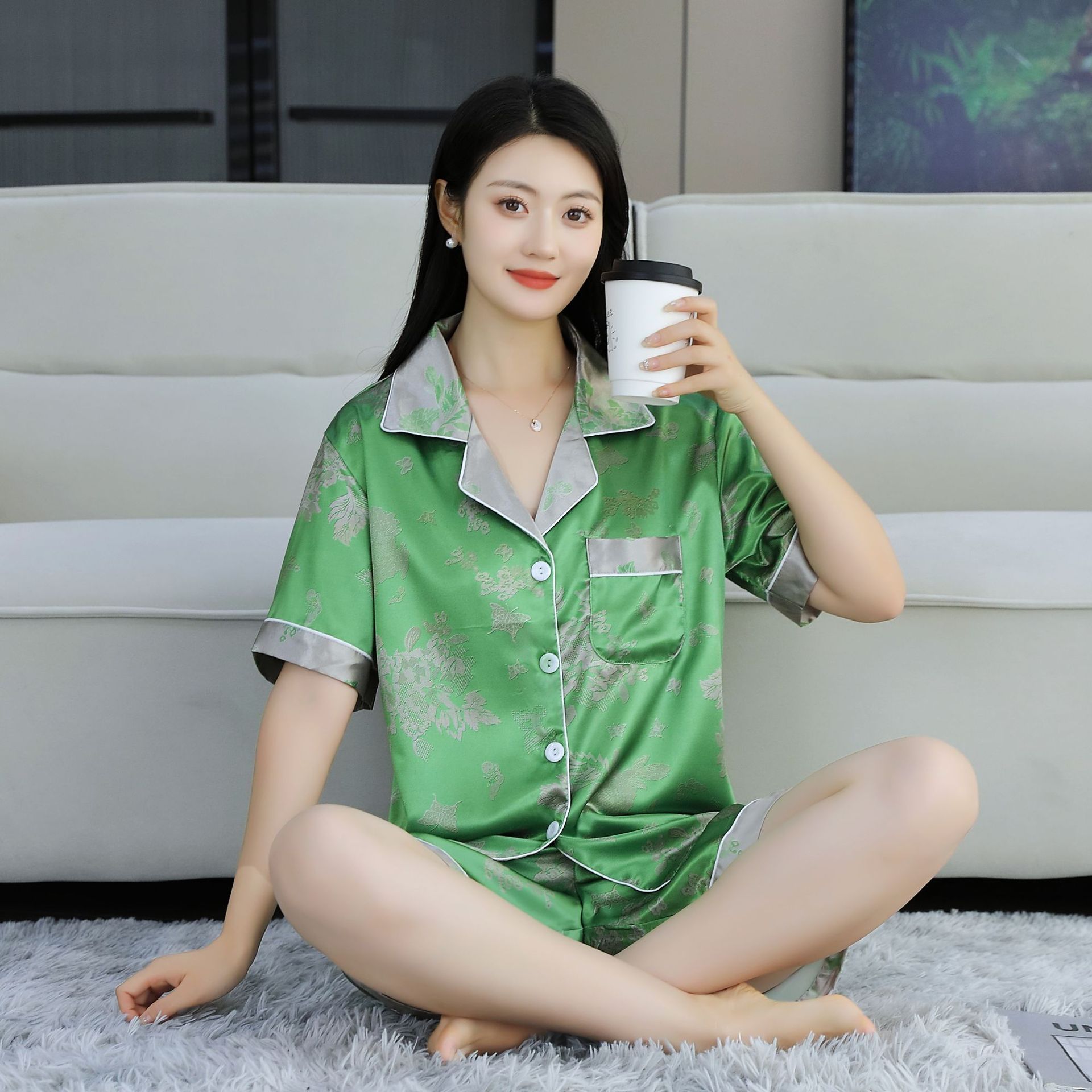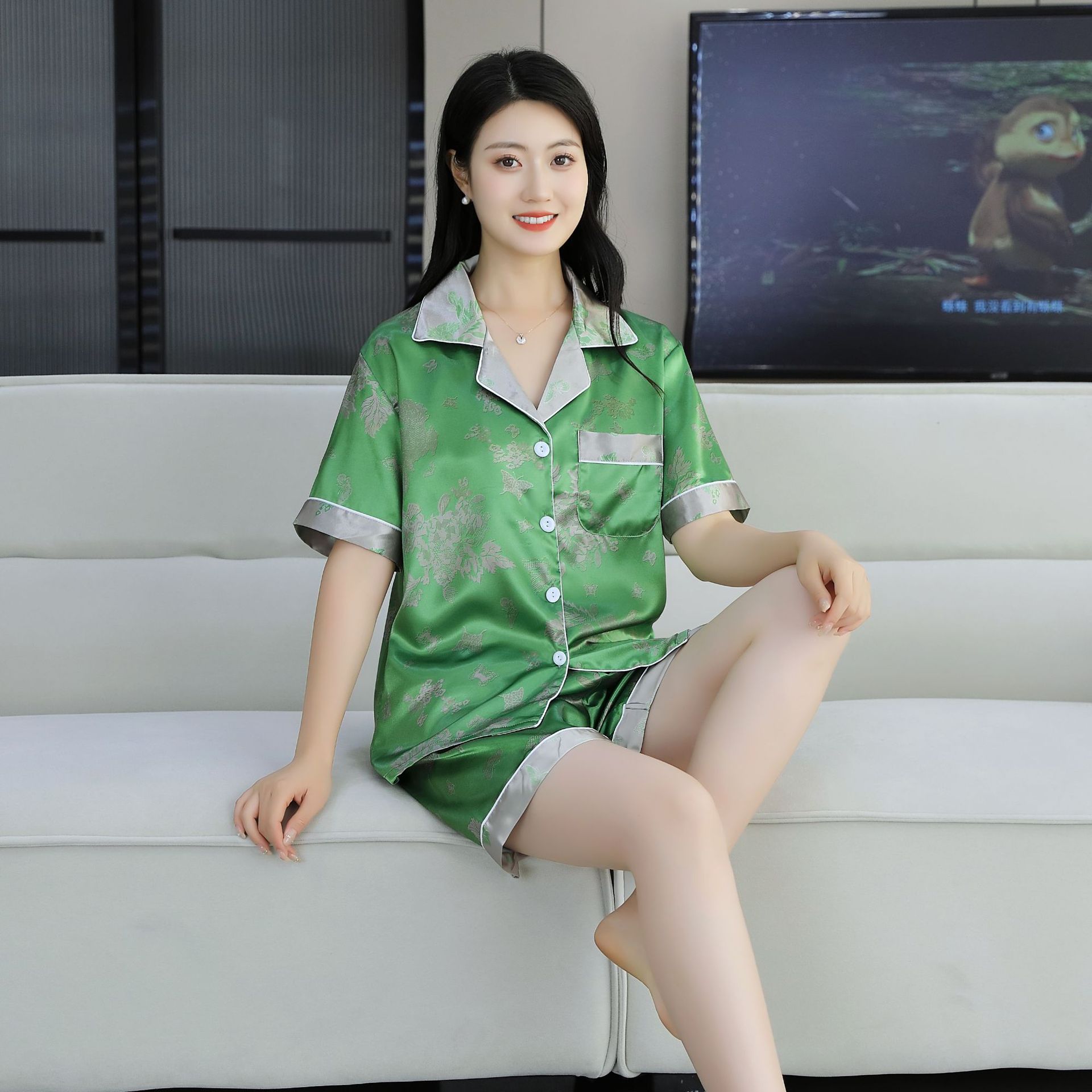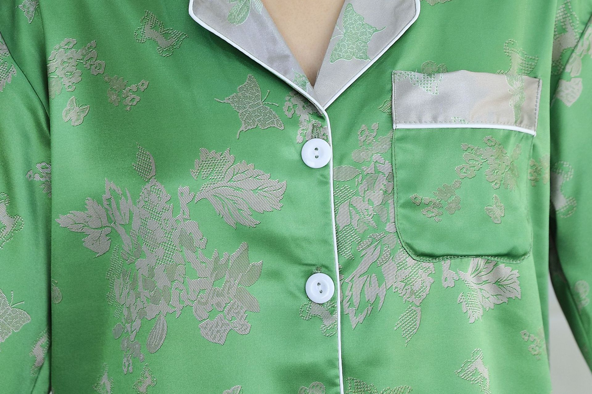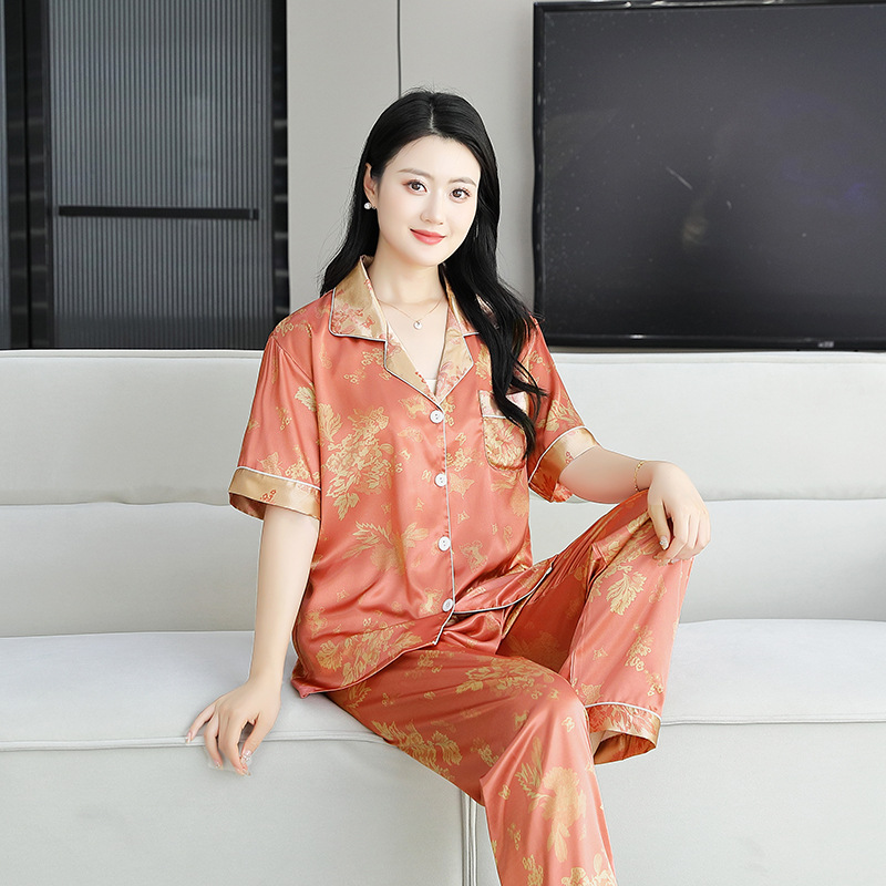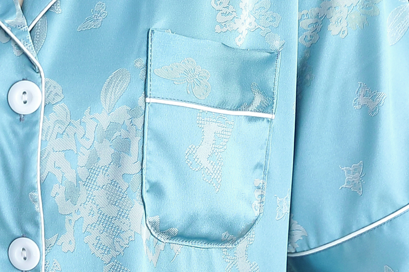 여성용 모조 실크 잠옷, 봄, 가을 3피스 세트, 나비 루즈 스노우 잠옷, 고급스럽고 가벼운 럭셔리 스타일, 집 밖에서 착용 가능스토어 가기