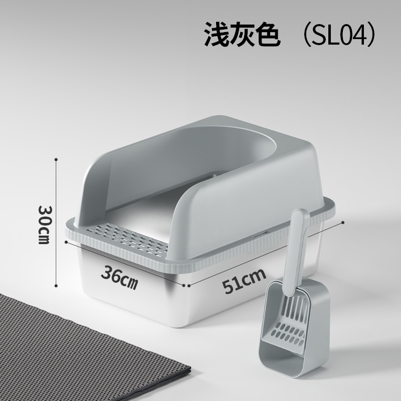 • 밝은 회색의 두꺼운 스테인레스 스틸 고양이 배변 상자 + 이중층 모래 차단 패드 + 다기능 고양이 배변 삽