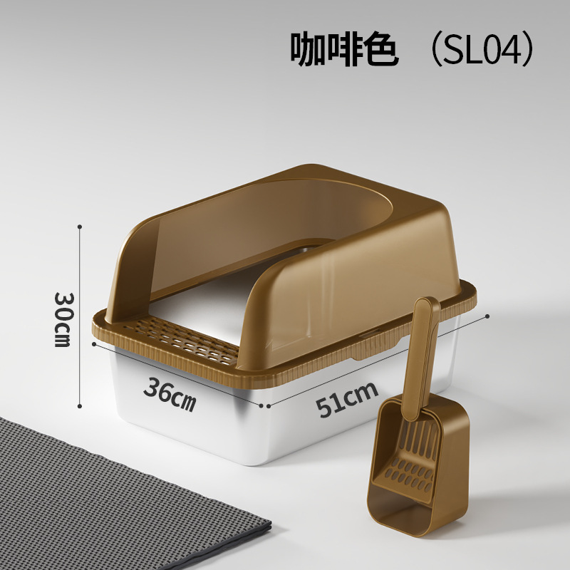 • 갈색 두꺼운 스테인레스 스틸 고양이 배변 상자 + 이중층 모래 차단 패드 + 다기능 고양이 배변 국자