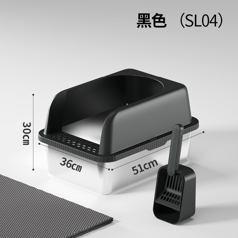 • 블랙 스테인레스 스틸 고양이 배변 상자 + 이중층 고양이 배변 매트 + 이중 목적 고양이 배변 삽