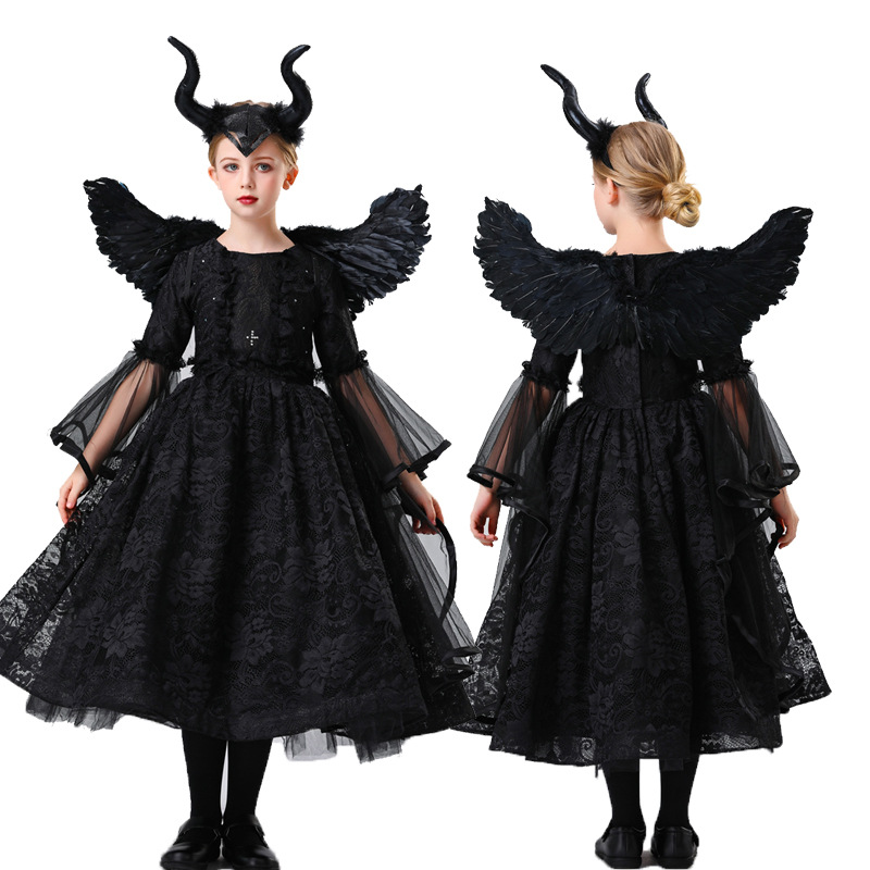 어린이 할로윈 마녀 뱀파이어 잠자는 검은 숲 어린이 의상 소녀 잠자는 매력 cos 원피스 악마스토어 가기