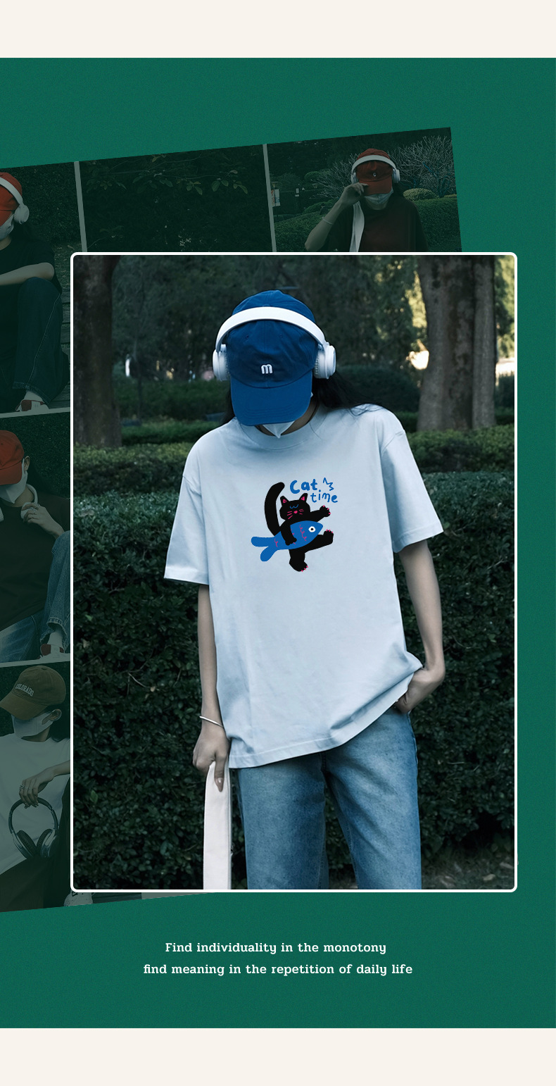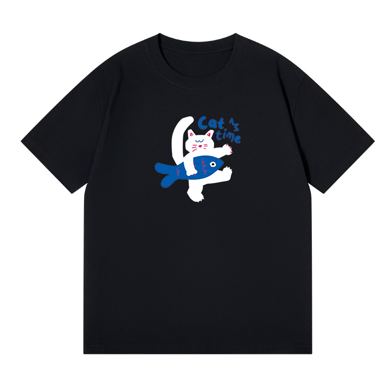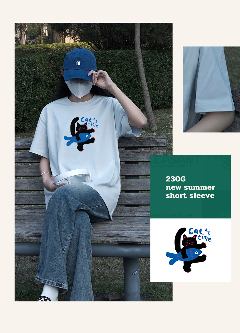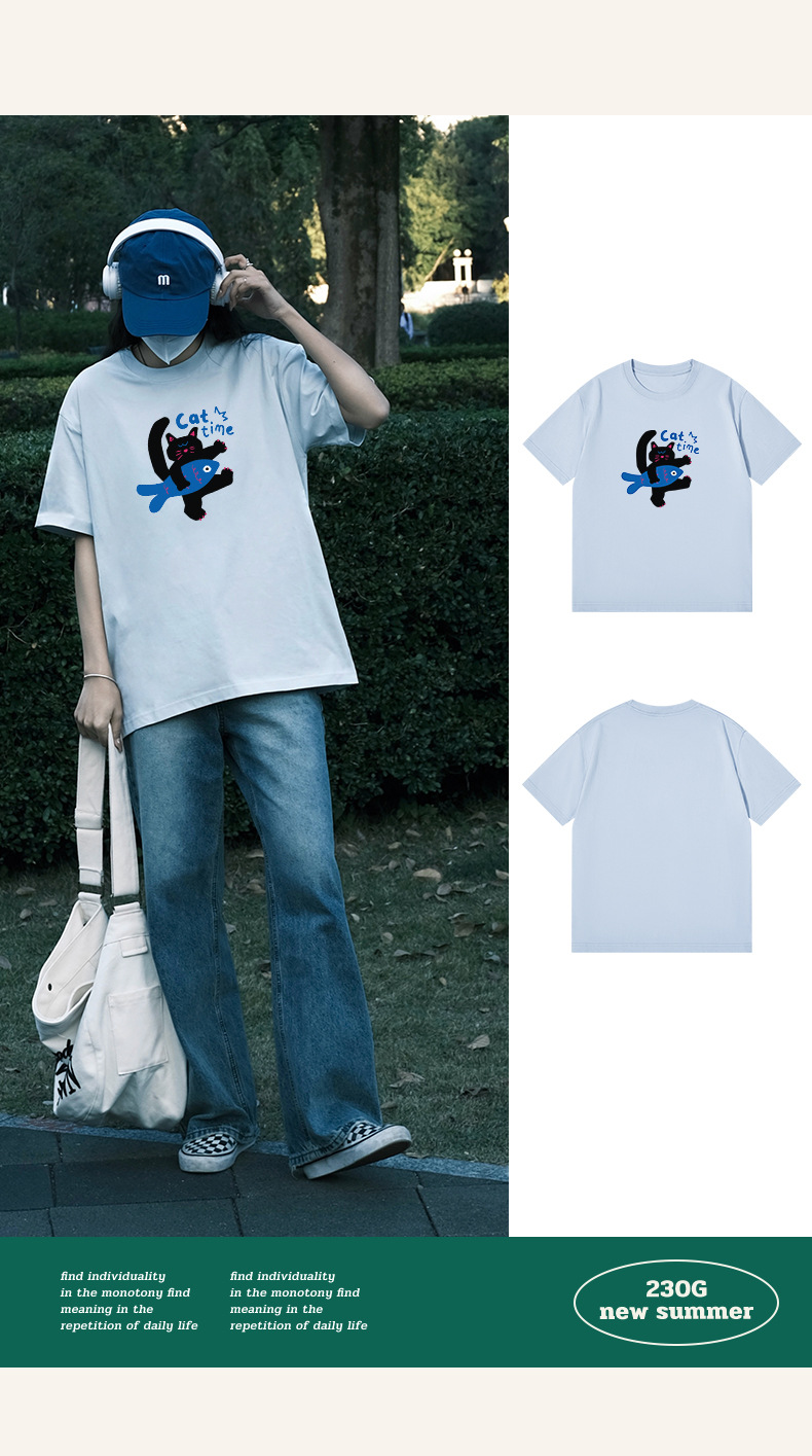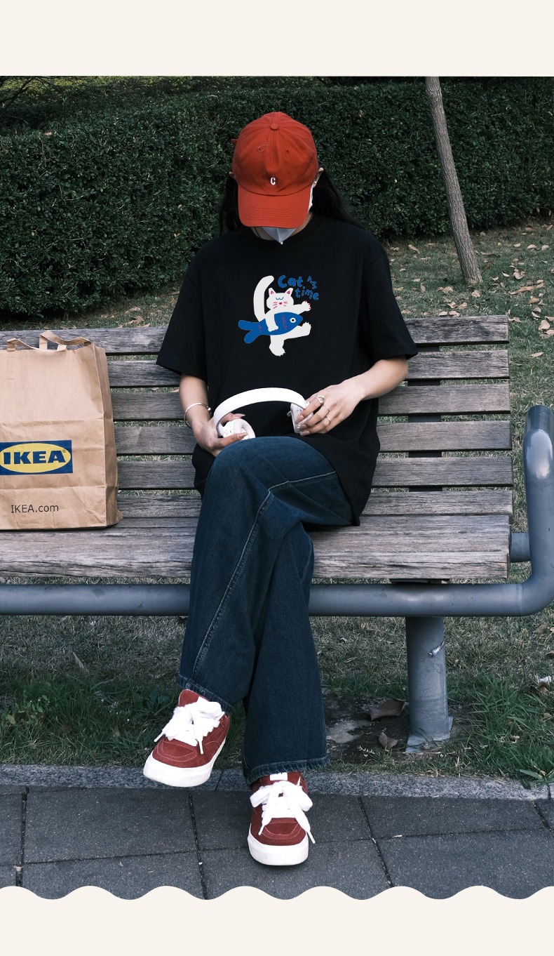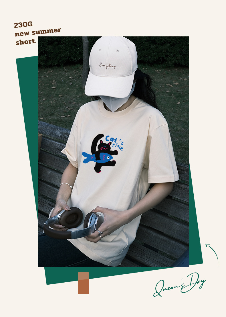 2024 여름 간단한 캐주얼 인쇄 반팔 티셔츠 소녀의 느슨한 면 둥근 목 어깨 탑 여성용 티셔츠스토어 가기